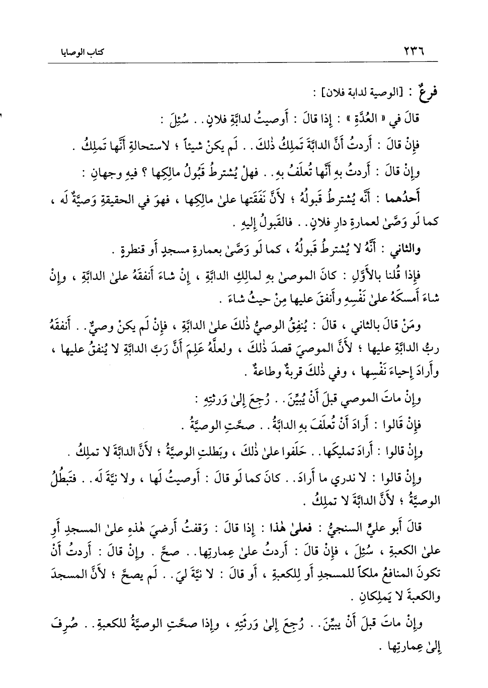 [فرع الوصية لدابة فلان]