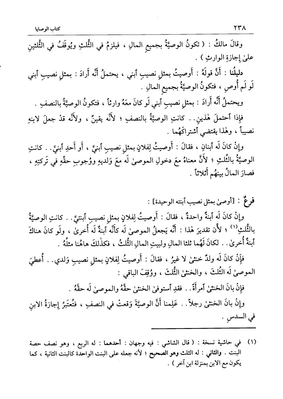 ويحتمل أنه أراد: بمثل نصيب ابني لو كان معه وارثا، فتكون الوصية بالنصف، فإذا احتمل هذين.. كانت الوصية بالنصف؛ لأنه يقين، ولأنه قد جعل لابنه نصيبا، وهذا يقتضي اشتراكهما.