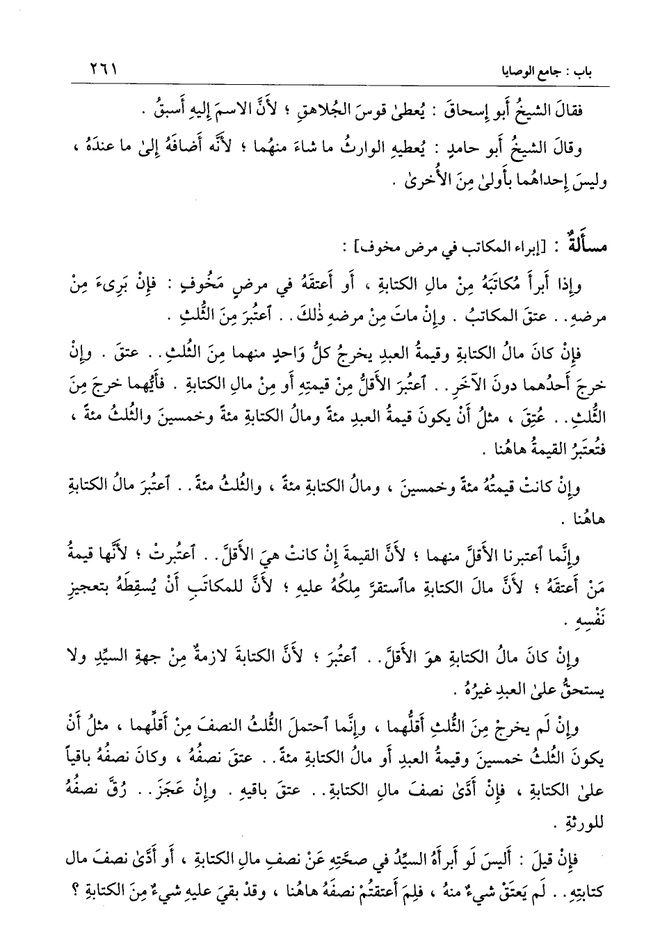 وإذا أبرأ مكاتبه من مال الكتابة، أو أعتقه في مرض مخوف: فإن برئ من مرضه.. عتق المكاتب. وإن مات من مرضه ذلك.. اعتبر من الثلث.