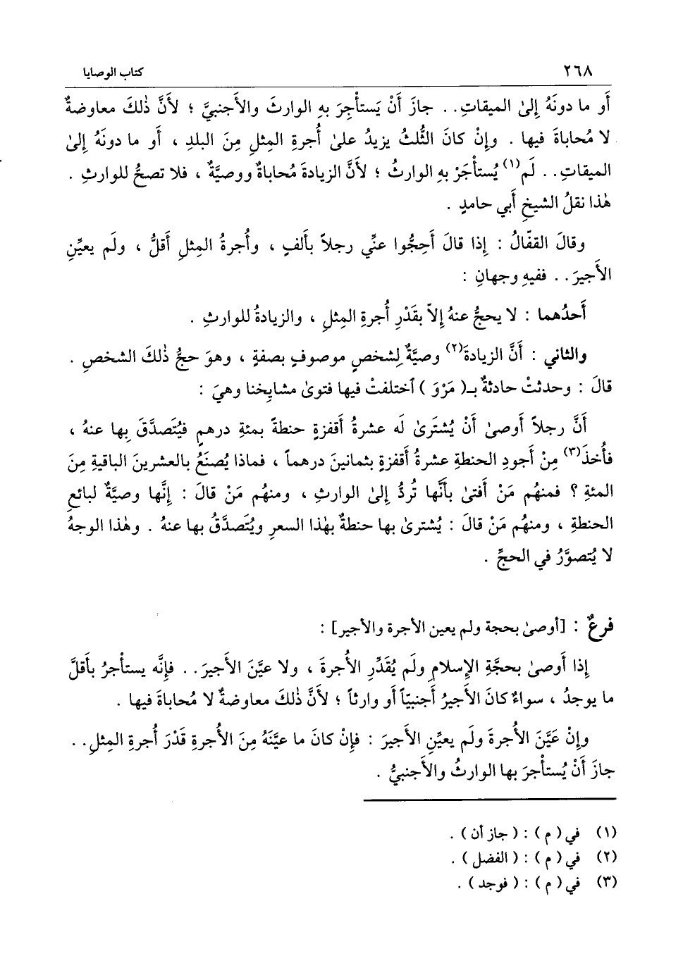 أن رجلاً أوصى أن يشترى له عشرة أقفزة حنطة بمائة درهم فيتصدق بها عنه، فأخذ من أجود الحنطة عشرة أقفزة بثمانين درهماً، فماذا يصنع بالعشرين الباقية من المائة؟ فمنهم من أفتى بأنها ترد إلى الوارث، ومنهم من قال: إنها وصية لبائع لحنطة، ومنهم من قال: يشترى بها حنطة بهذا السعر ويتصدق بها عنه.. وهذا الوجه لا يتصور في الحج