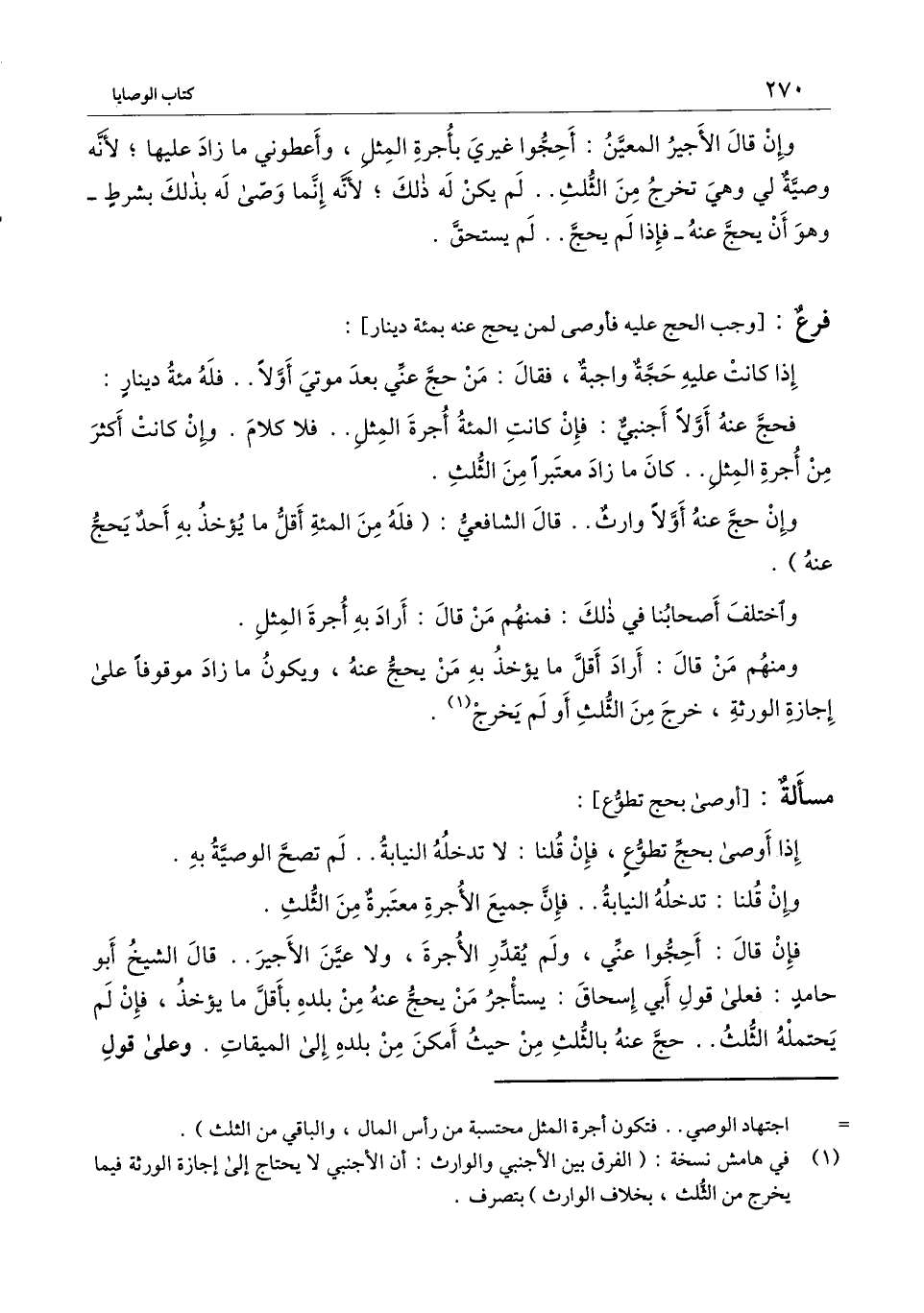 إذا كانت عليه حجة واجبة، فقال من حج عني بعد موتي أولاً.. فله مائة دينار: فحج عنه أولاً أجنبي: فإن كانت المائة أجرة المثل.. فلا كلام. وإن كانت أكثر من أجرة المثل.. كان ما زاد معتبرا من الثلث.