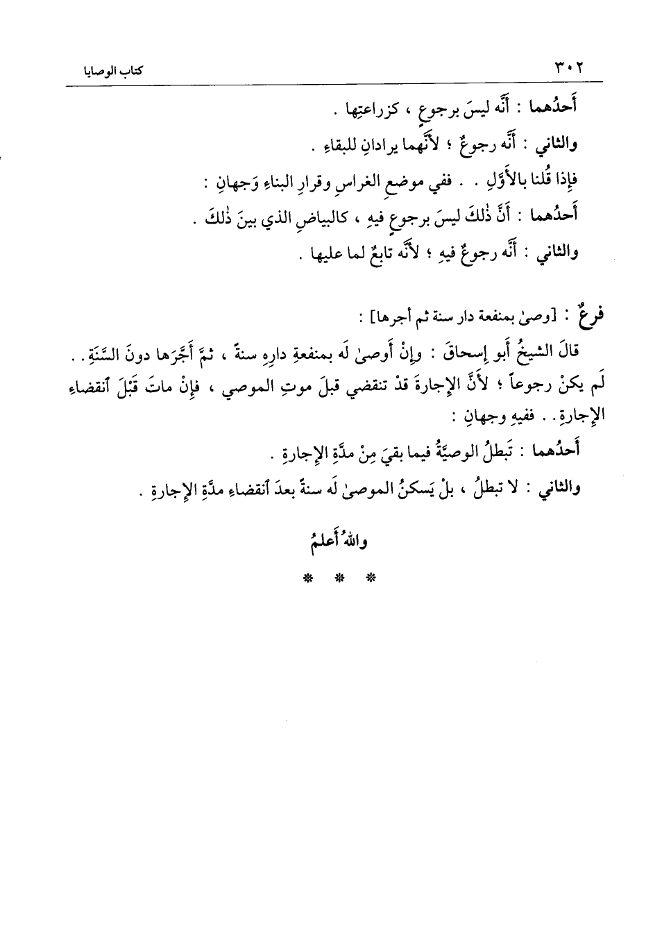 قال الشيخ أبو إسحاق: وإن أوصى له بمنفعة داره سنة، ثم أجرها دون السنة.. لم يكن رجوعاً؛ لأن الإجارة قد تنقضي قبل موت الموصي، فإن مات قبل انقضاء الإجارة.. ففيه وجهان: