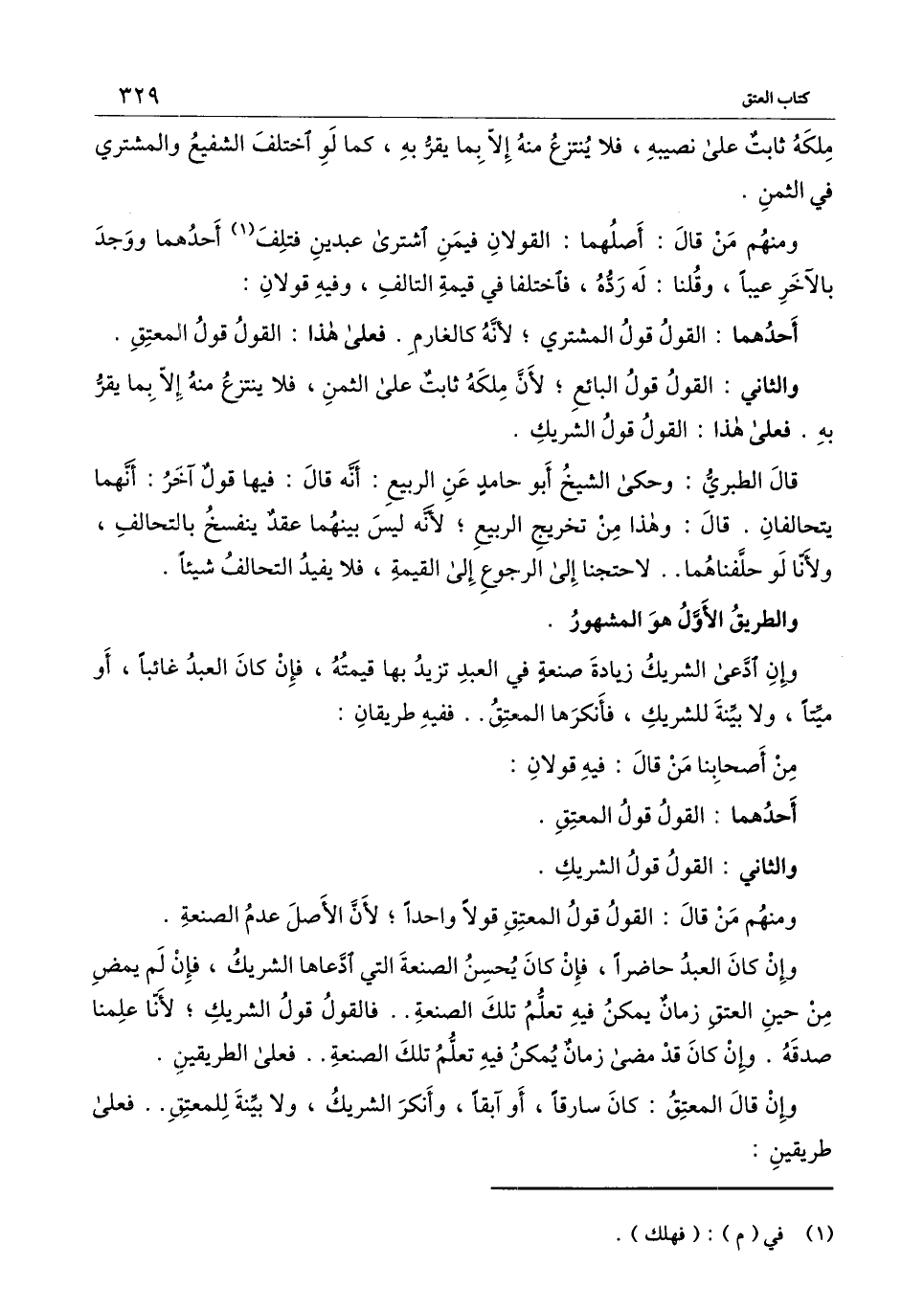 ومنهم من قال: القول قول المعتق قولاً واحداً؛ لأن الأصل عدم الصنعة.