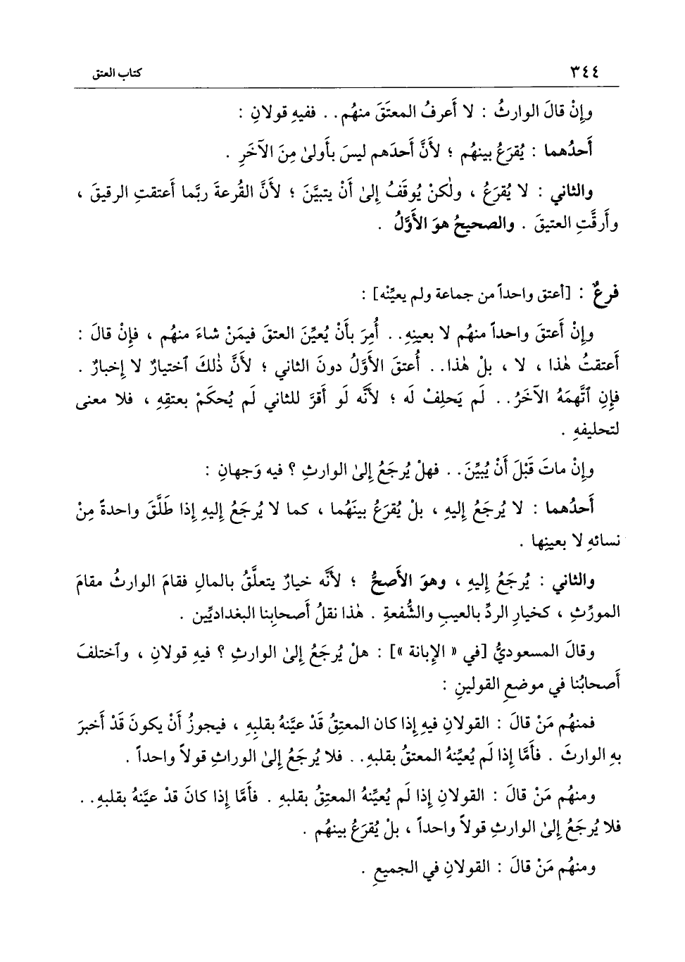ومنهم من قال: القولان إذا لم يعنيه المعتق بقلبه. فأما إذا كان قد عينه بقلبه.. فلا يرجع إلى الوارث قولاً واحداً، بل يقرع بينهم.