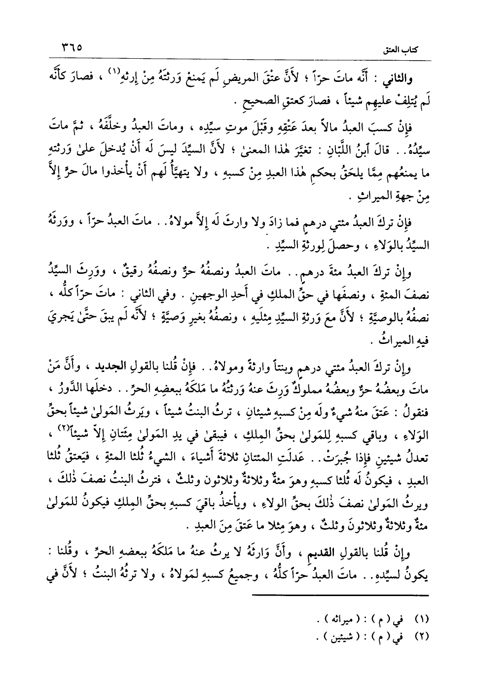 فإن ترك العبد مائتي درهم فما زاد ولا وارث له إلا مولاه.. مات العبد حراً، وورثه السيد بالولاء، وحصل لورثة السيد.