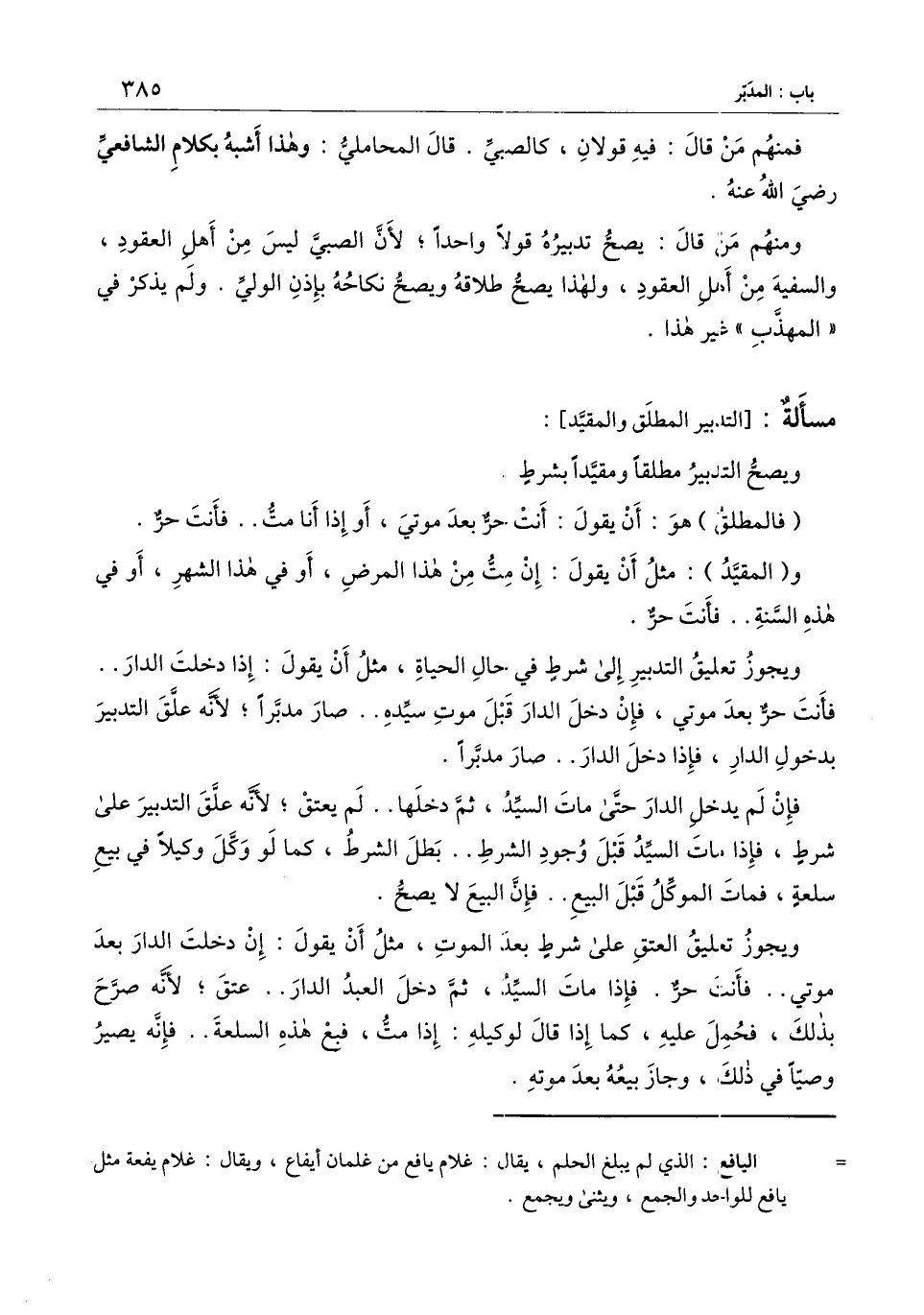 [مسألة التدبير المطلق والمقيد]