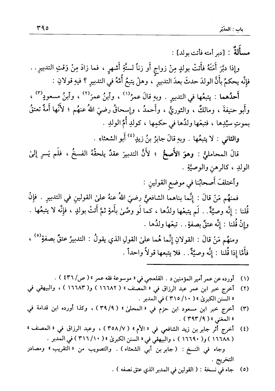 وإذا دبر أمته فأتت بولد من زواج أو زنًا لستة أشهر، فما زاد من وقت التدبير.. فإنه يحكم بأن الولد حدث بعد التدبير، وهل يتبع أمه في التدبير؟ فيه قولان: