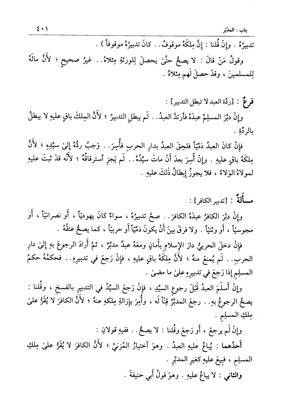 [مسألة تدبير الكافر]
