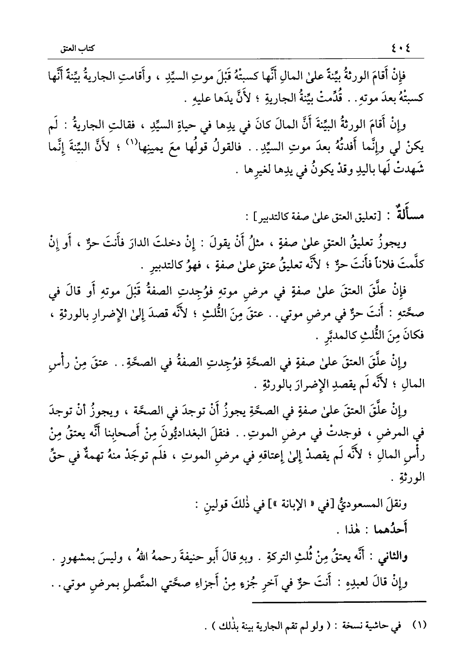 وإن علق العتق على صفة في الصحة يجوز أن توجد في الصحة، ويجوز أن توجد في المرض، فوجدت في مرض الموت.. فنقل البغداديون من أصحابنا أنه يعتق من رأس المال؛ لأنه لم يقصد إلى إعتاقه في مرض الموت، فلم توجد منه تهمة في حق الورثة.