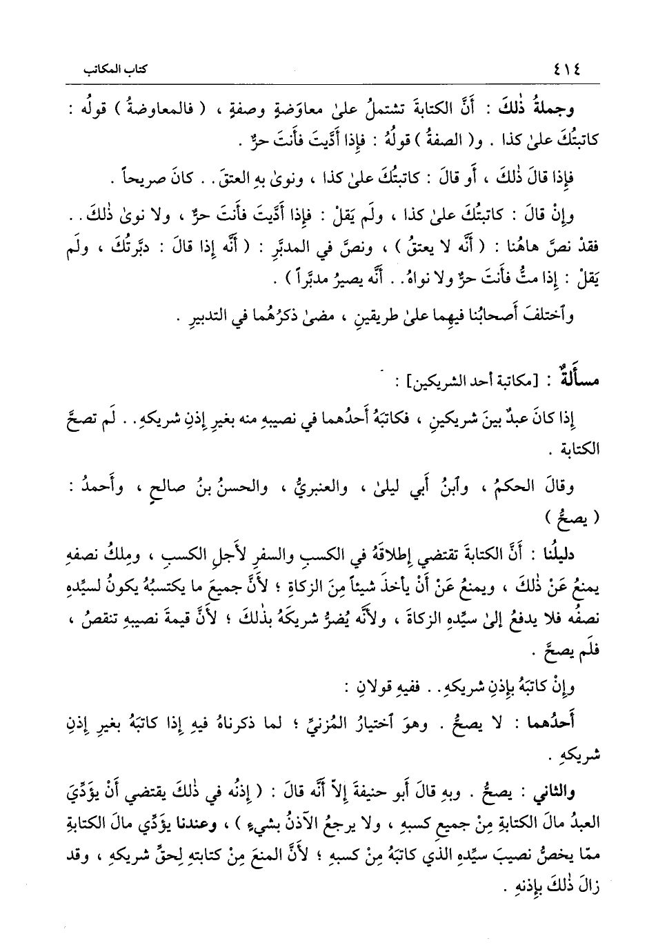 [مسألة مكاتبة أحد الشريكين]