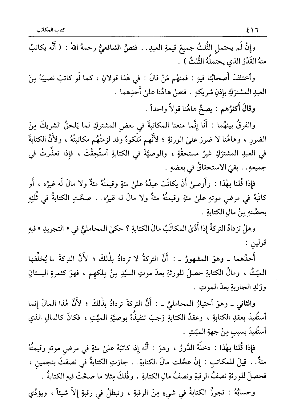 والثاني ـ وهو اختيار المحاملي ـ أن التركة تزداد بذلك؛ لأن هذا المال إنما استفيد بعقد الكتابة، وعقد الكتابة وجب تنفيذه بوصية الميت، فكان كالمال الذي استفيد بسبب من جهة الميت.