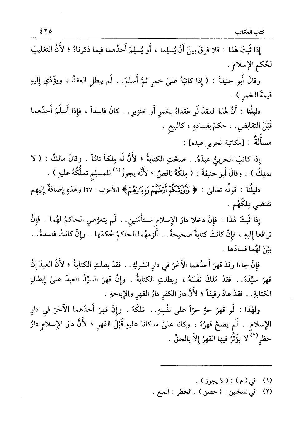 [مسألة مكاتبة الحربي عبده]