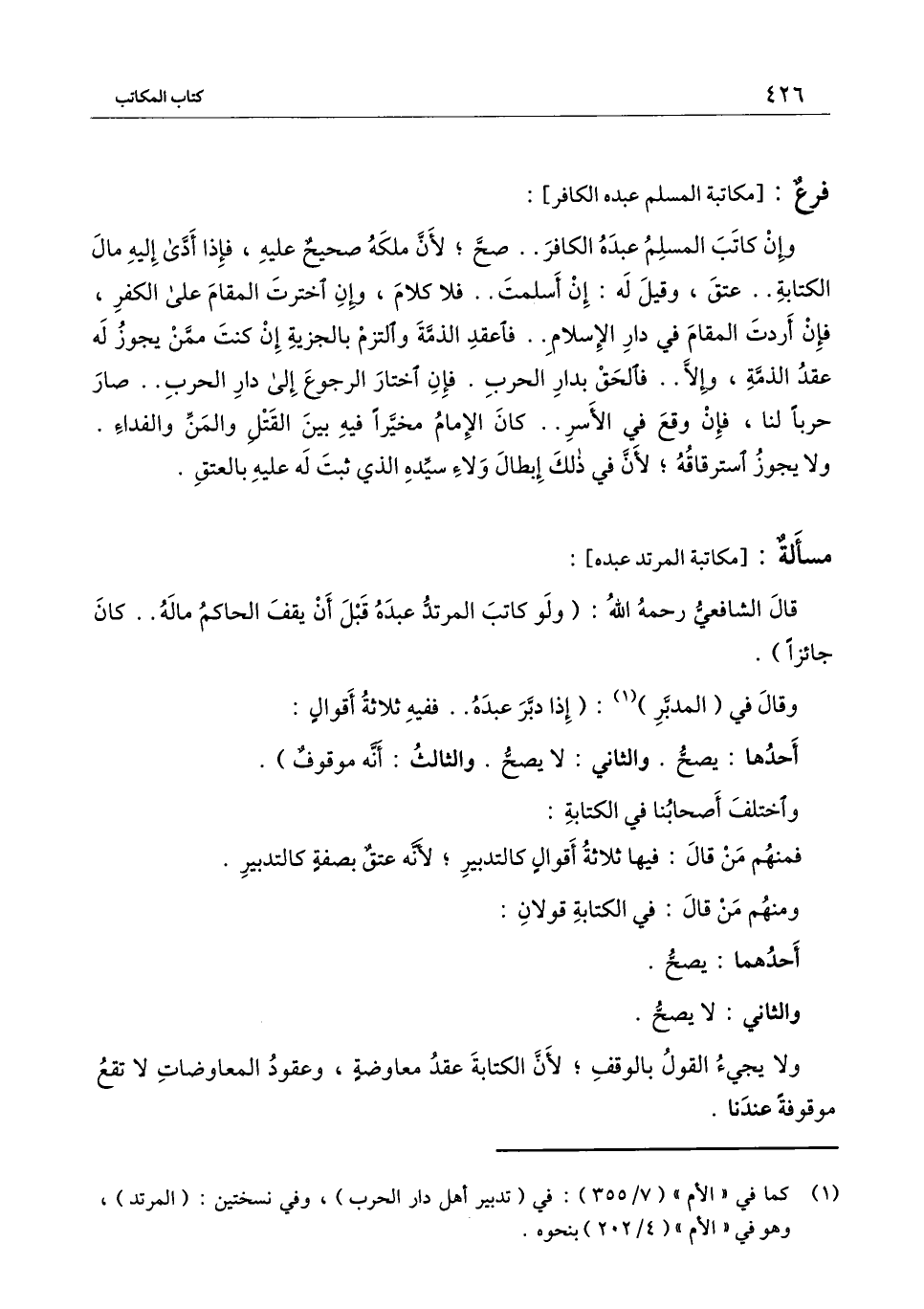 ) : قال الشافعي - رَحِمَهُ اللَّهُ -: (لو كاتب المرتد عبده قبل أن يقف الحاكم ماله.. كان جائزًا) .
