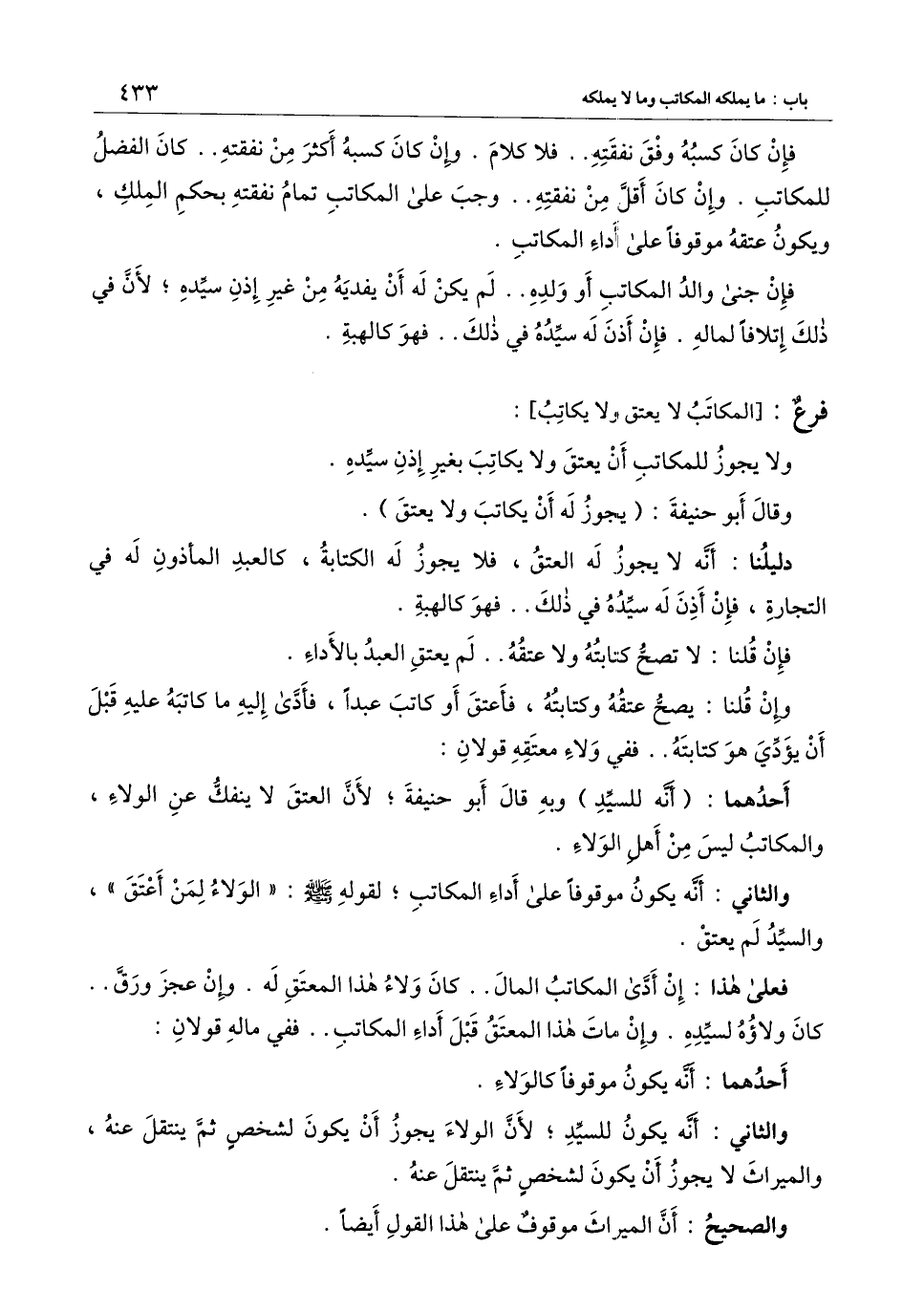 ) : ولا يجوز للمكاتب أن يعتق ولا يكاتب بغير إذن سيده.