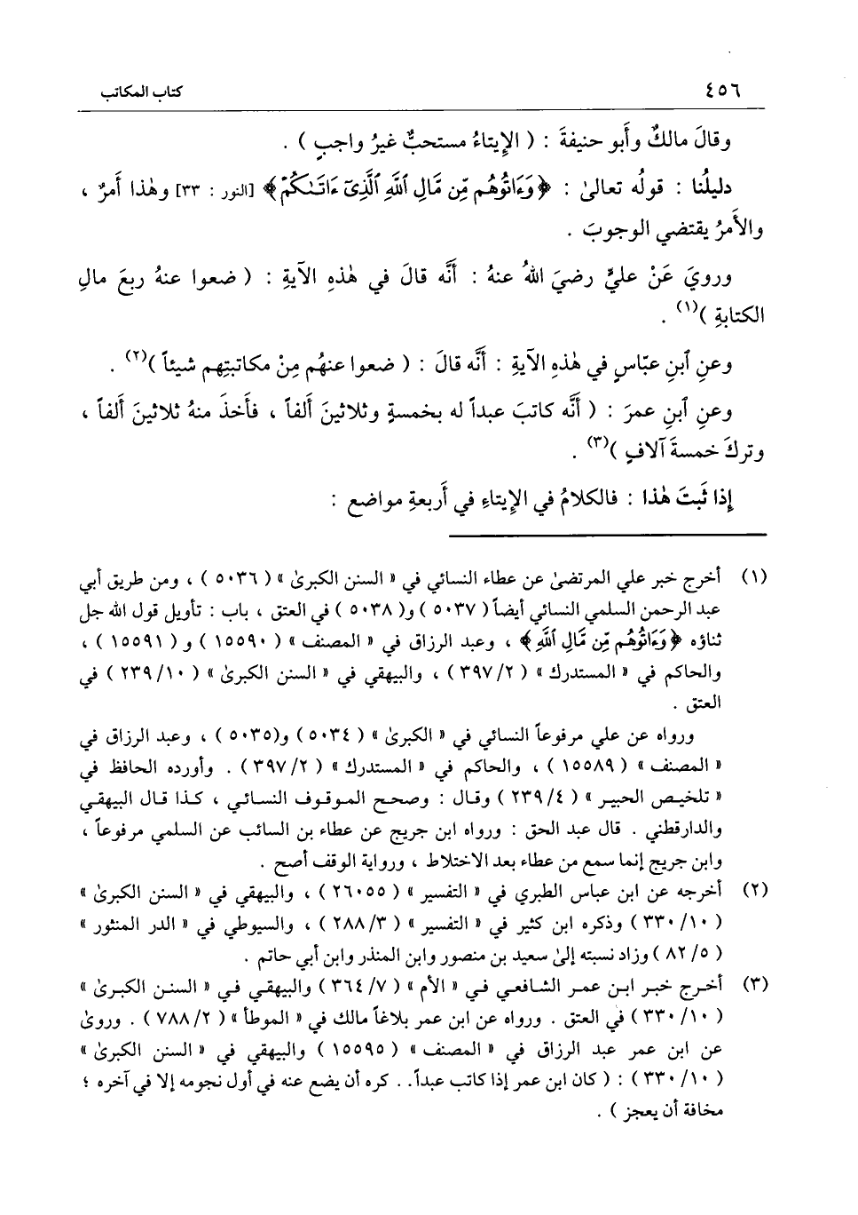 وقال مالك وأبو حنيفة: (الإيتاء مستحب غير واجب) .
