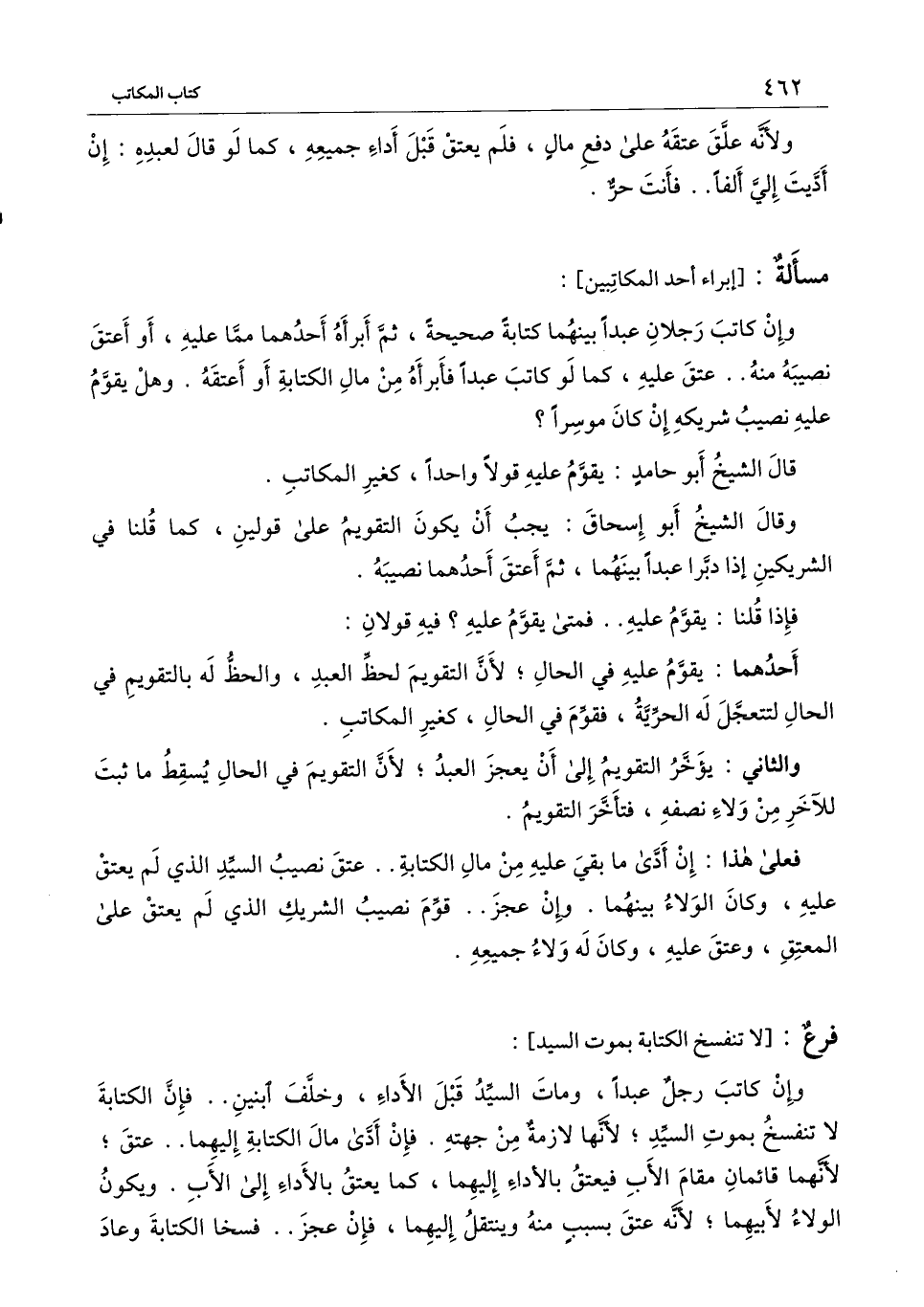 [فرع لا تنفسخ الكتابة بموت السيد]
