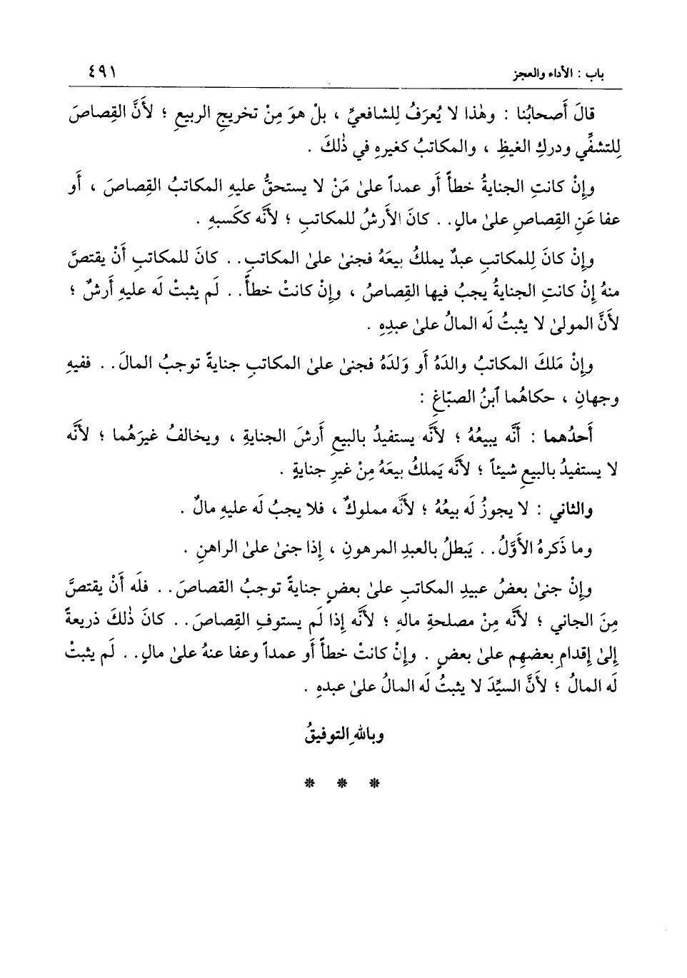 وإن جنى بعض عبيد المكاتب على بعض جناية توجب القصاص.. فله أن يقتص من الجاني؛ لأنه من مصلحة ماله؛ لأنه إذا لم يستوف القصاص.. كان ذلك ذريعة إلى إقدام بعضهم على بعض. وإن كانت خطأ أو عمدا وعفا عنه على مال.. لم يثبت له المال؛ لأن السيد لا يثبت له المال على عبده.