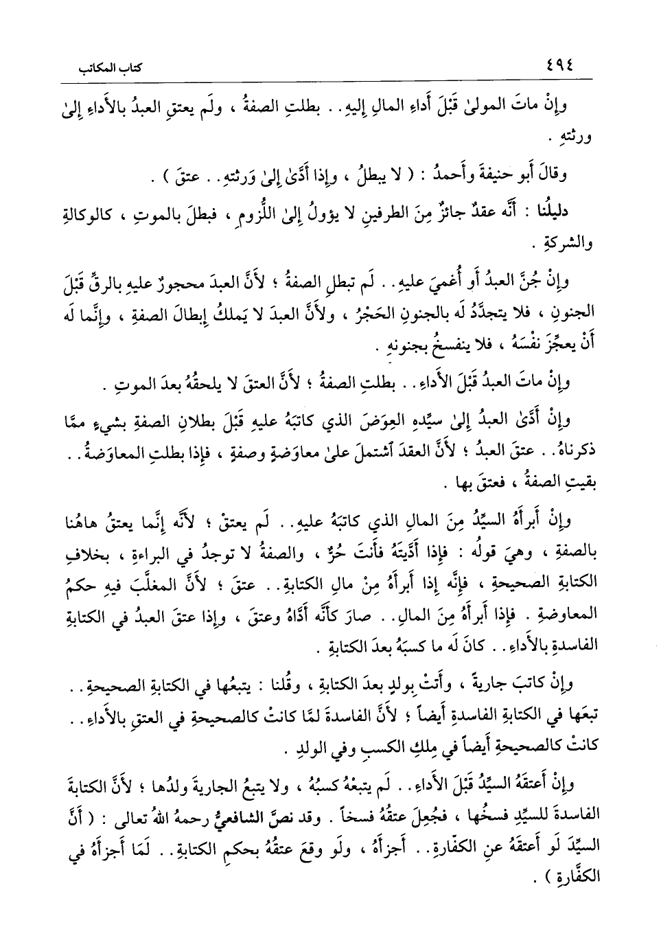 وإن مات المولى قبل أداء المال إليه.. بطلت الصفة، ولم يعتق العبد بالأداء إلى ورثته.