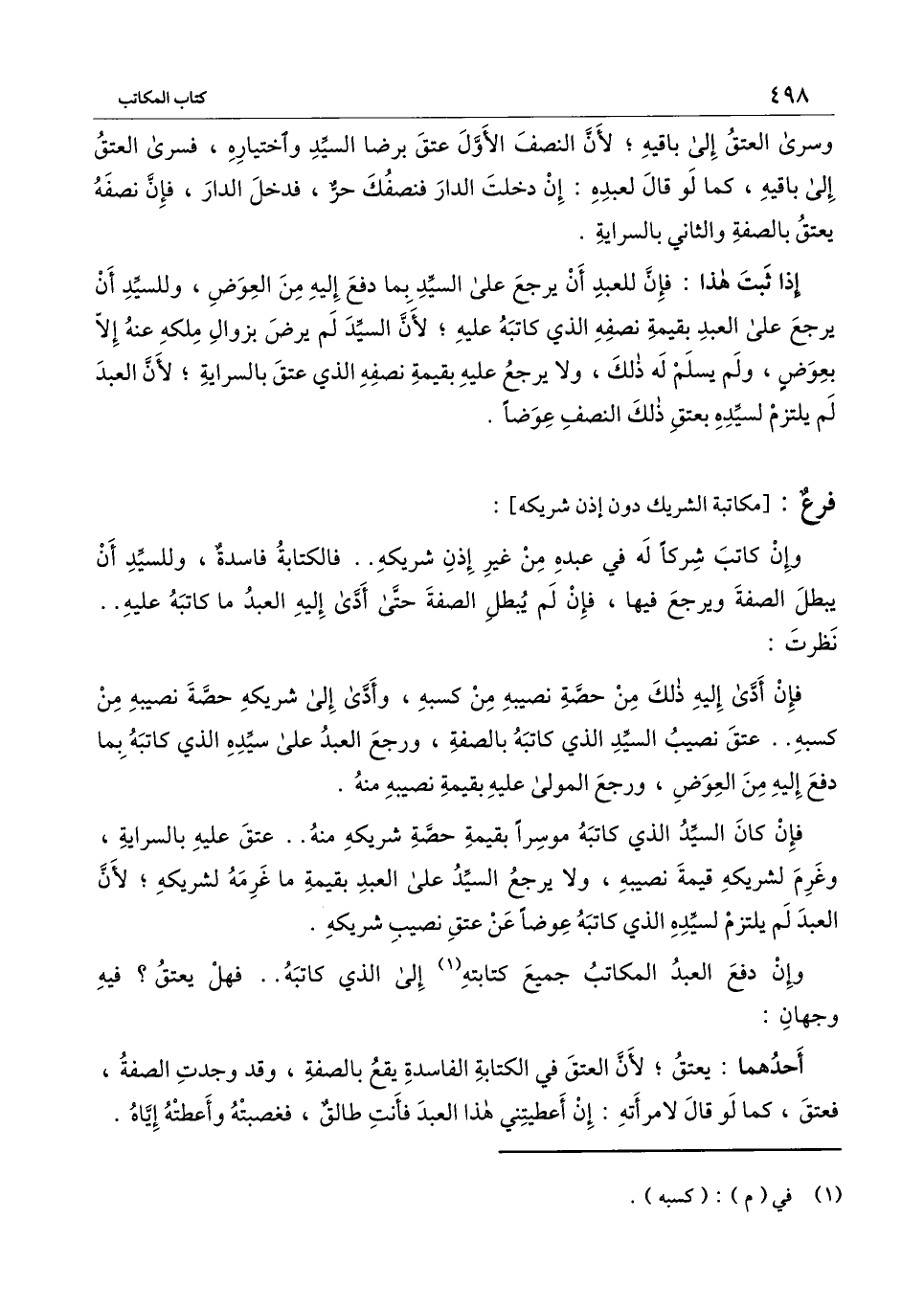 [فرع: مكاتبة الشريك دون إذن شريكه]