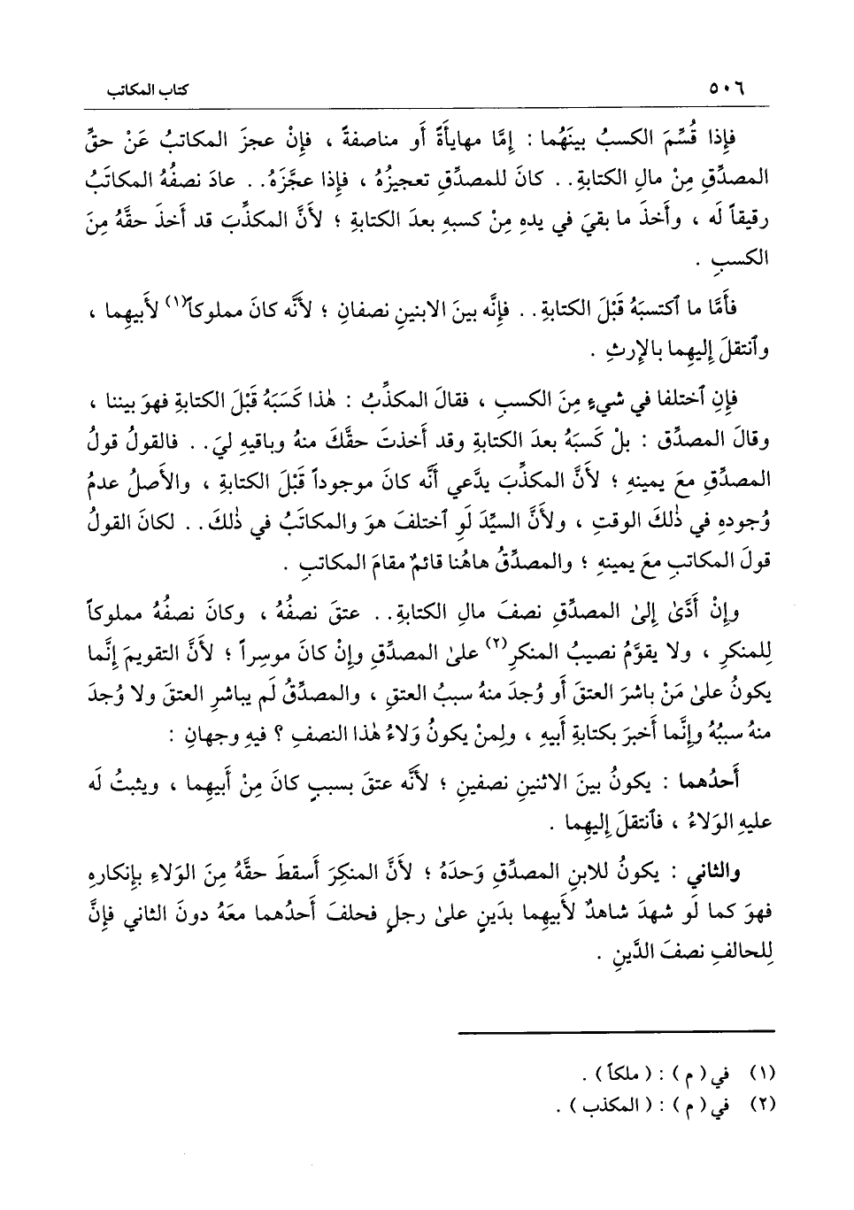 فإن اختلفا في شيء من الكسب، فقال المكذب: هذا كسبه قبل الكتابة فهو بيننا، وقال المصدق: بل كسبه بعد الكتابة وقد أخذت حقك منه وباقيه لي.. فالقول قول المصدق مع يمينه؛ لأن المكذب يدعي أنه كان موجودا قبل الكتابة، والأصل عدم وجوده في ذلك الوقت، ولأن السيد لو اختلف هو والمكاتب في ذلك.. لكان القول قول المكاتب مع يمينه؛ والمصدق هاهنا قائم مقام المكاتب.