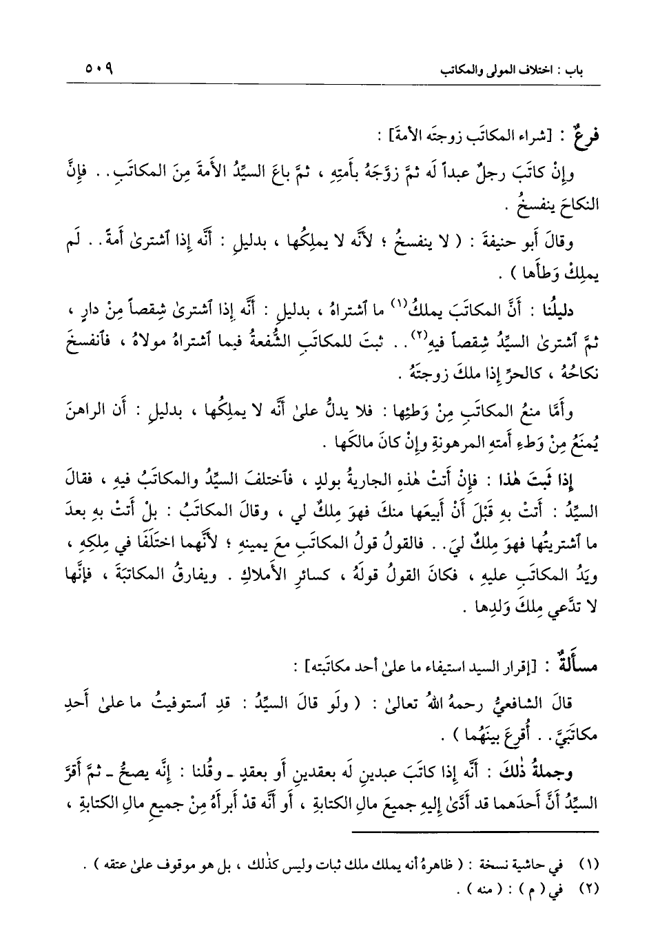 دليلنا: أن المكاتب يملك ما اشتراه، بدليل: أنه إذا اشترى شقصًا من دار، ثم اشترى السيد شقصًا فيه.. ثبت للمكاتب الشفعة فيما اشتراه مولاه، فانفسخ نكاحه، كالحر إذا ملك زوجته.