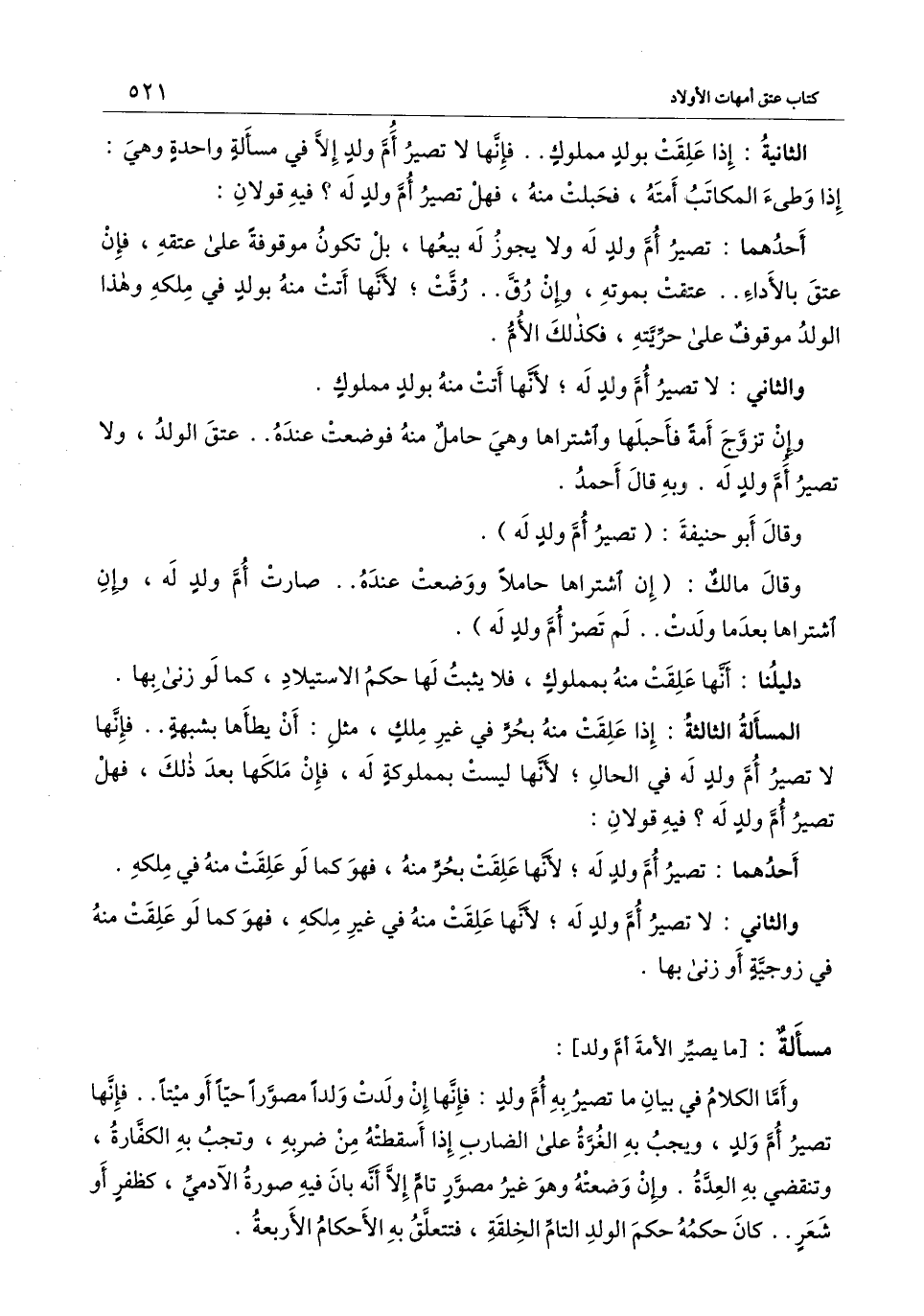 وقال مالك: (إن اشتراها حاملًا ووضعت عنده.. صارت أم ولد له، وإن اشتراها بعدما ولدت.. لم تصر أم ولد له) .