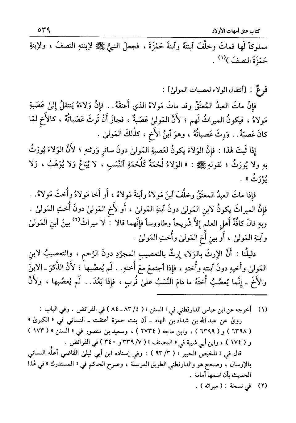 [فرع انتقال الولاء لعصبات المولى]