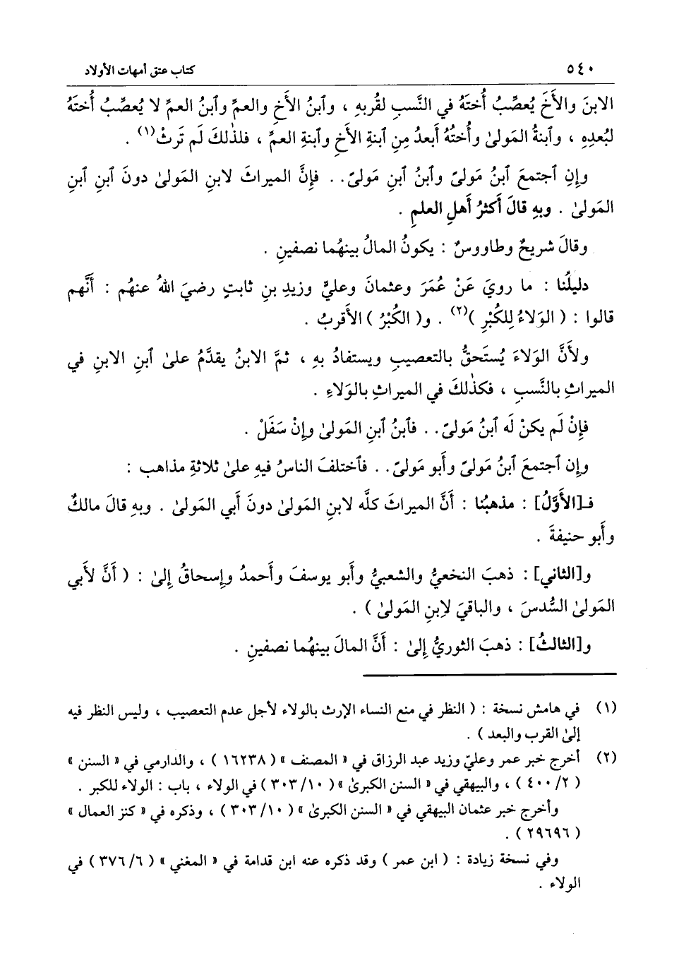 وإن اجتمع ابن مولى وأبو مولى.. فاختلف الناس فيه على ثلاثة مذاهب: