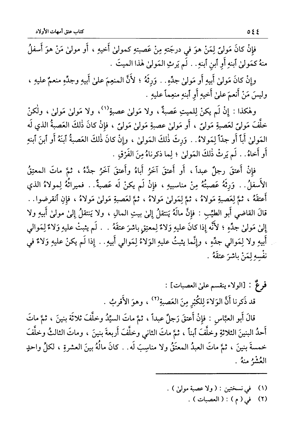 [فرع الولاء ينقسم على العصبات]