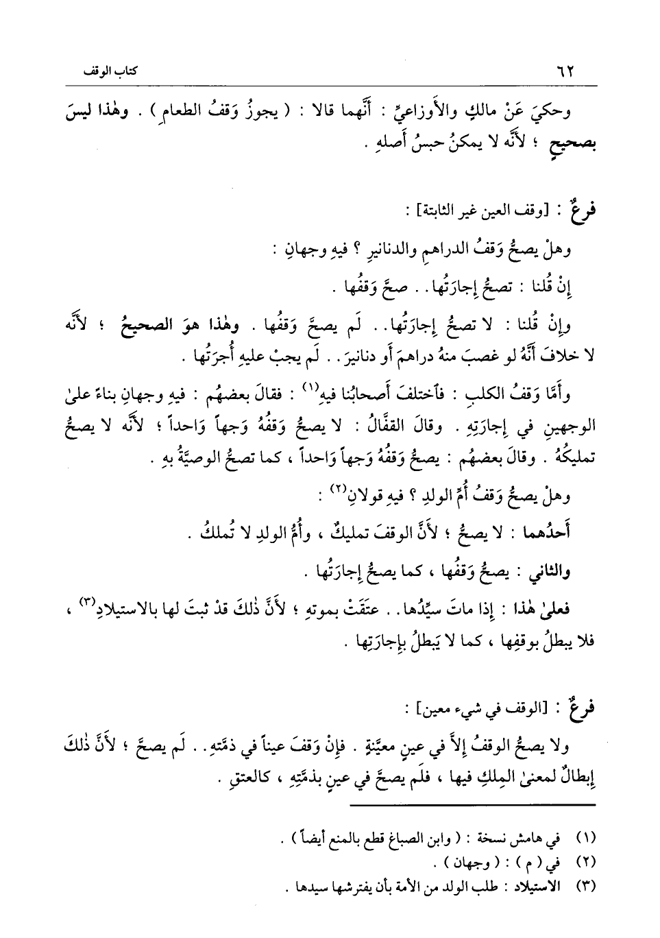وحكي عن مالك والأوزاعي أنهما قالا: (يجوز وقف الطعام) . وهذا ليس بصحيح؛ لأنه لا يمكن حبس أصله.