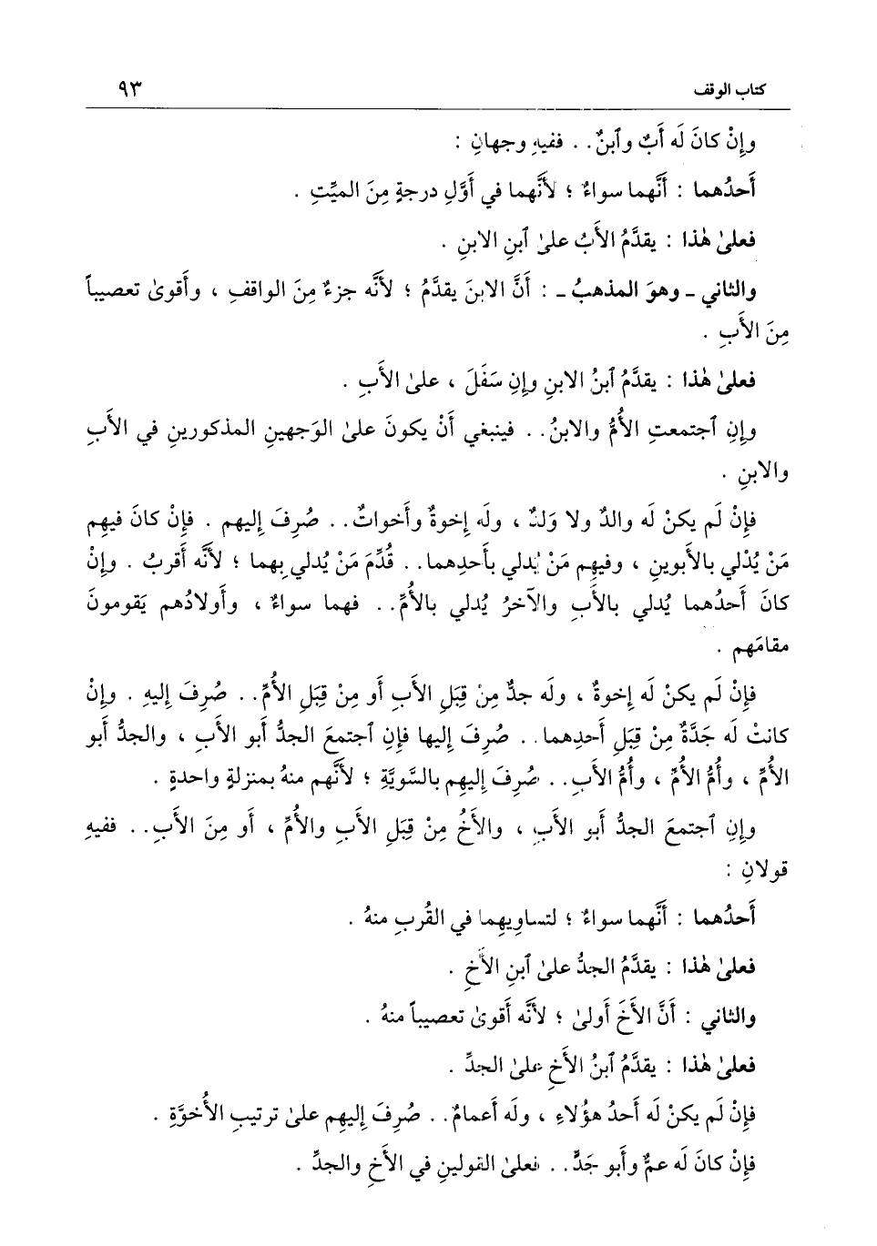 والثاني - وهو المذهب -: أن الابن يقدم؛ لأنه جزء من الواقف، وأقوى تعصيبًا من الأب.