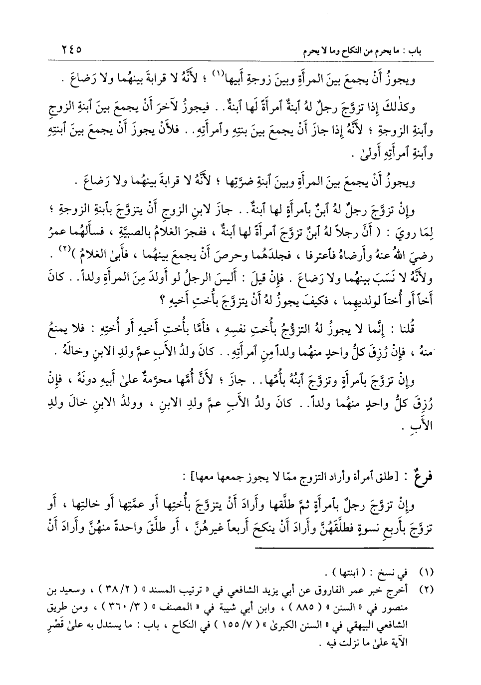 وإن تزوج رجل له ابن بامرأة لها ابنة.. جاز لابن الزوج أن يتزوج بابنة الزوجة، لما روي: (أن رجلا له ابن تزوج امرأة لها ابنة، ففجر الغلام بالصبية، فسألهما عمر - رَضِيَ اللَّهُ عَنْهُ - وأرضاه فاعترفا، فجلدهما وحرص أن يجمع بينهما، فأبى الغلام) .