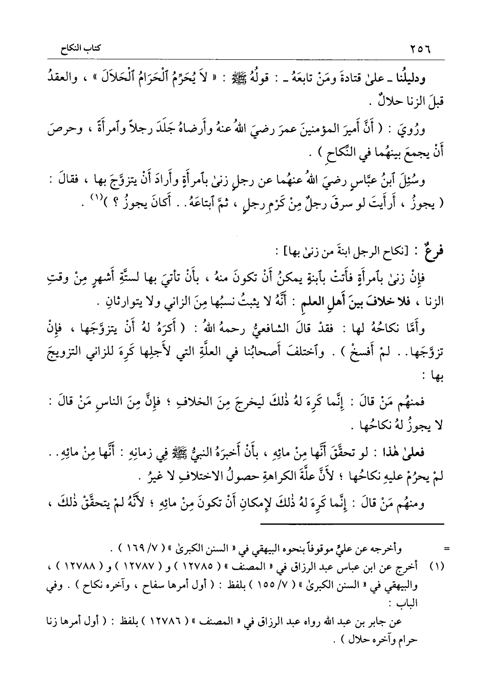 وسئل ابن عباس - رَضِيَ اللَّهُ عَنْهُمَا - عن رجل زنى بامرأة وأراد أن يتزوج بها، فقال (يجوز، أرأيت لو سرق رجل من كرم رجل، ثم ابتاعه.. أكان يجوز؟) .