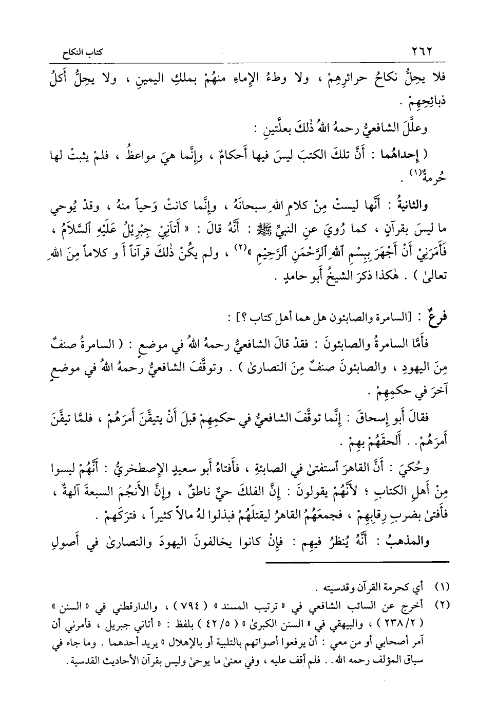 فأما السامرة والصابئون: فقد قال الشافعي - رَحِمَهُ اللَّهُ - في موضع: (السامرة صنف من اليهود، والصابئون صنف من النصارى) . وتوقف الشافعي - رَحِمَهُ اللَّهُ - في موضع آخر في حكمهم.
