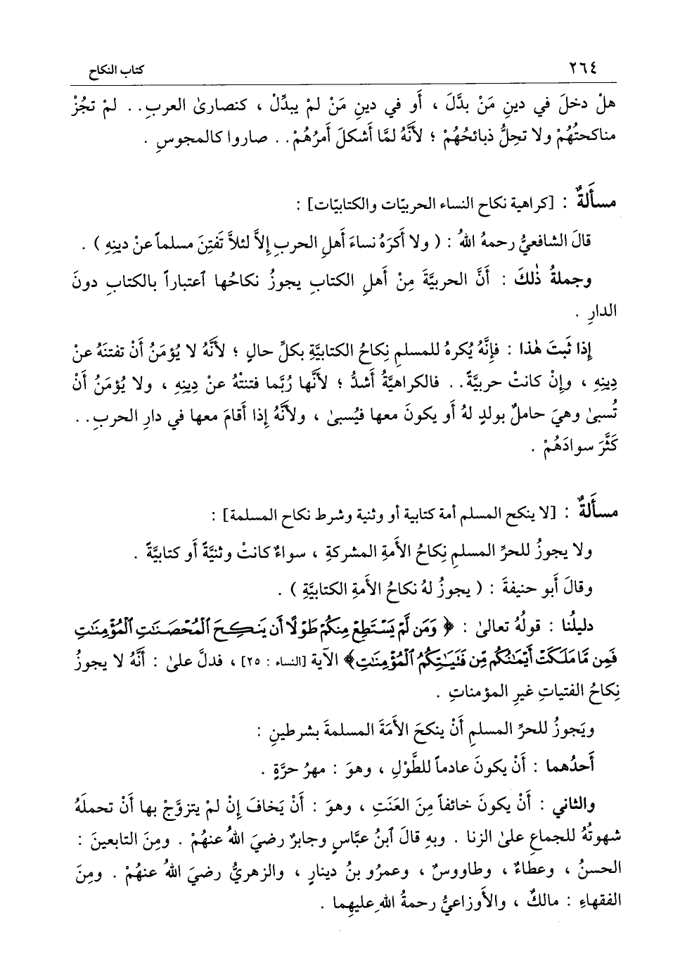 [مسألة لا ينكح المسلم أمة كتابية أو وثنية وشرط نكاح المسلمة]