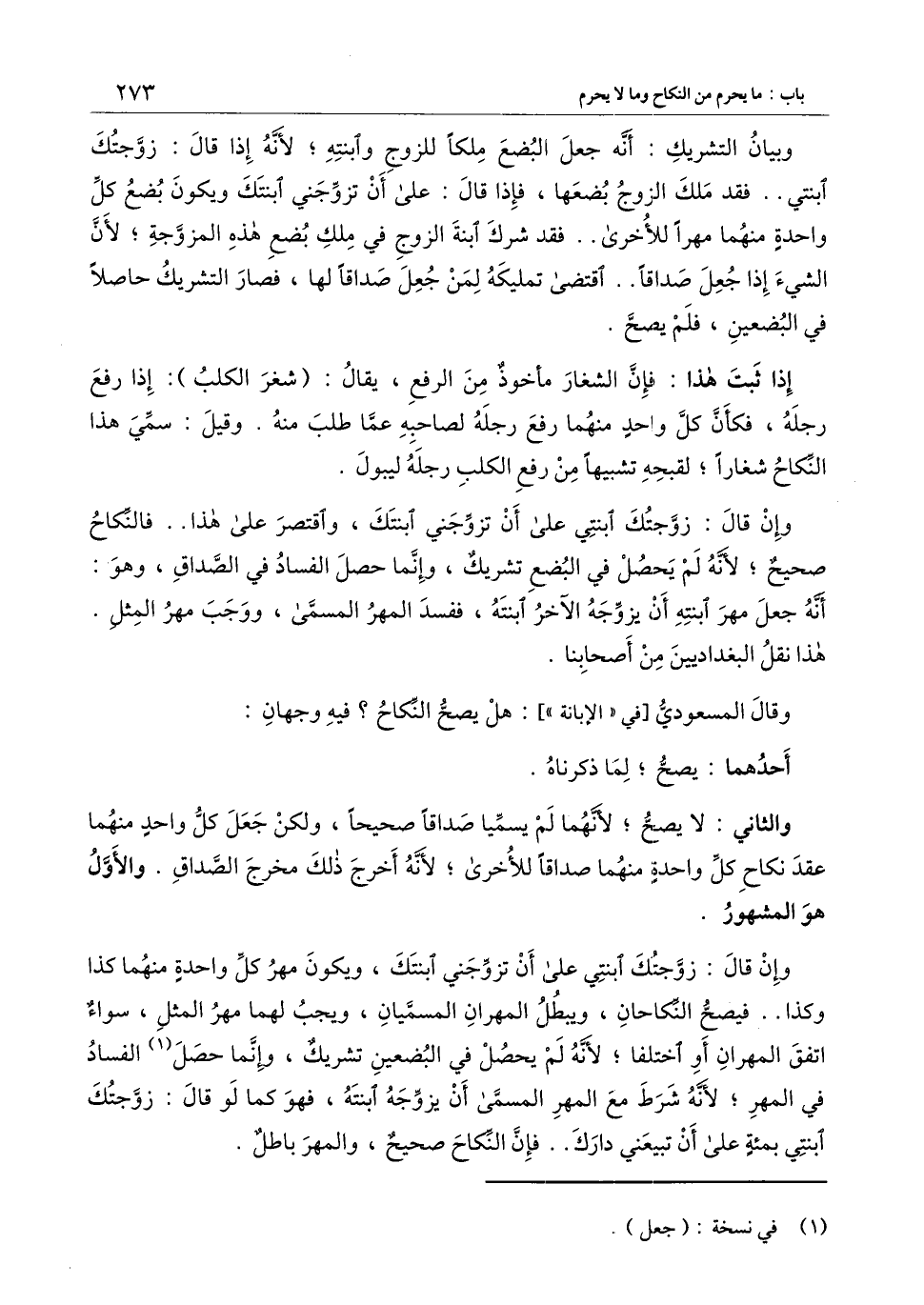 وبيان التشريك: أنه جعل البضع ملكا للزوج وابنته؛ لأنه إذا قال: زوجتك ابنتي.. فقد ملك الزوج بضعها، فإذا قال: على أن تزوجني ابنتك ويكون بضع كل واحدة منهما مهرا للأخرى.. فقد شرك ابنة الزوج في ملك بضع هذه المزوجة؛ لأن الشيء إذا جعل صداقا.. اقتضى تمليكه لمن جعل صداقا لها، فصار التشريك حاصلا في البضعين، فلم يصح.