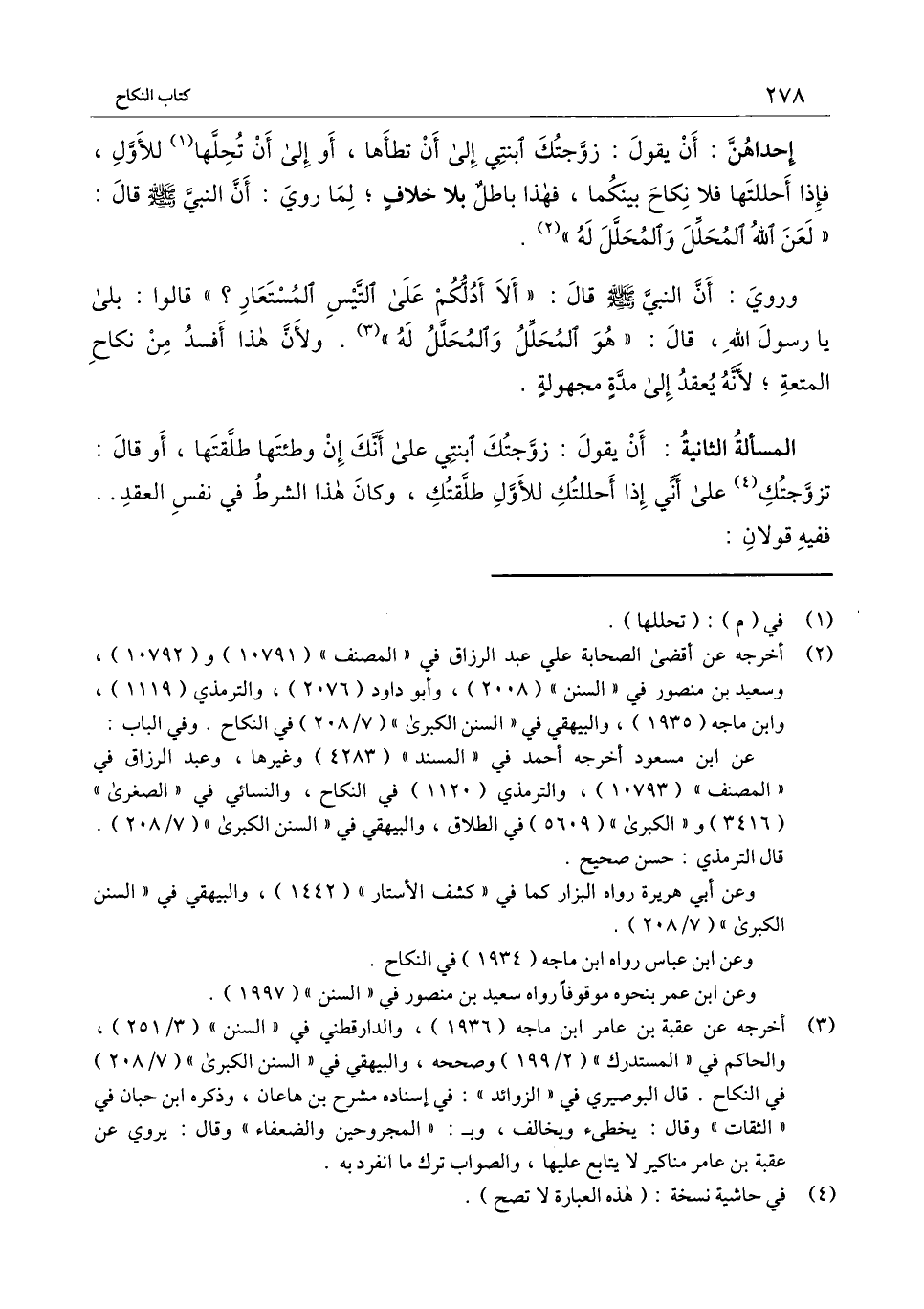 إحداهن: أن يقول: زوجتك ابنتي إلى أن تطأها، أو إلى أن تحلها للأول، فإذا أحللتها فلا نكاح بينكما، فهذا باطل بلا خلاف؛ لما روي: أن النبي - صَلَّى اللَّهُ عَلَيْهِ وَسَلَّمَ - قال: «لعن الله المحلل والمحلل له» .