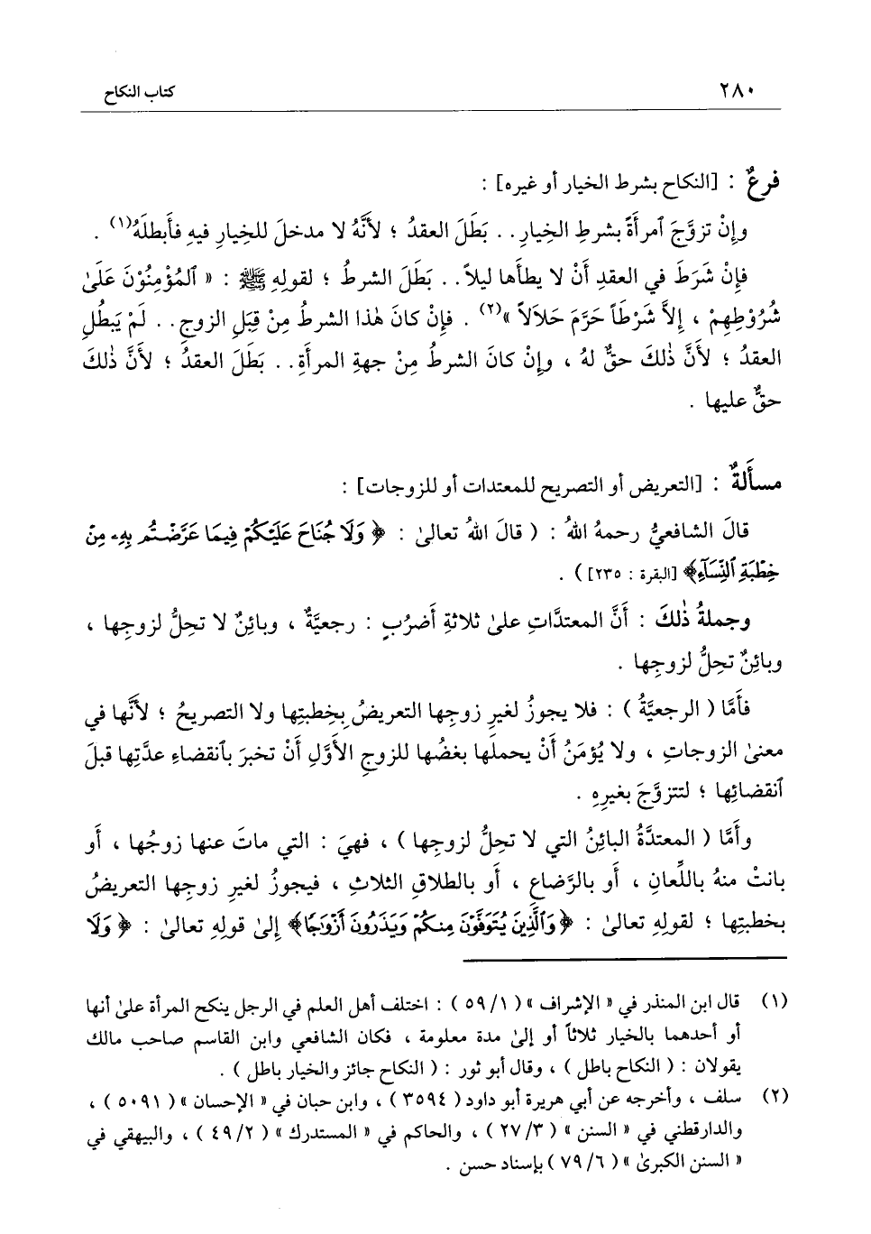 [مسألة التعريض أو التصريح للمعتدات أو للزوجات]