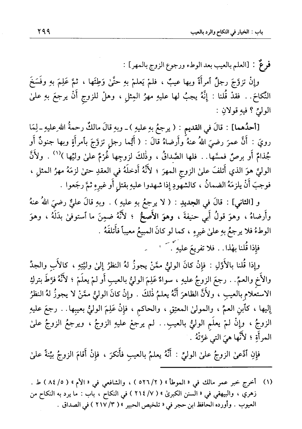 وإذا قلنا بالأول: فإن كان الولي ممن يجوز له النظر إلى وليته، كالأب والجد والأخ والعم.. رجع الزوج عليه، سواء علم الولي بالعيب أو لم يعلم؛ لأنه فرط بترك الاستعلام بالعيب، ولأن الظاهر أنه يعلم ذلك. وإن كان الولي ممن لا يجوز له النظر إليها، كابن العم، والمولى المعتق، والحاكم، فإن علم الولي بعيبها.. رجع عليه الزوج، وإن لم يعلم الولي بالعيب.. لم يرجع عليه الزوج، ويرجع الزوج على المرأة؛ لأنها هي التي غرته.