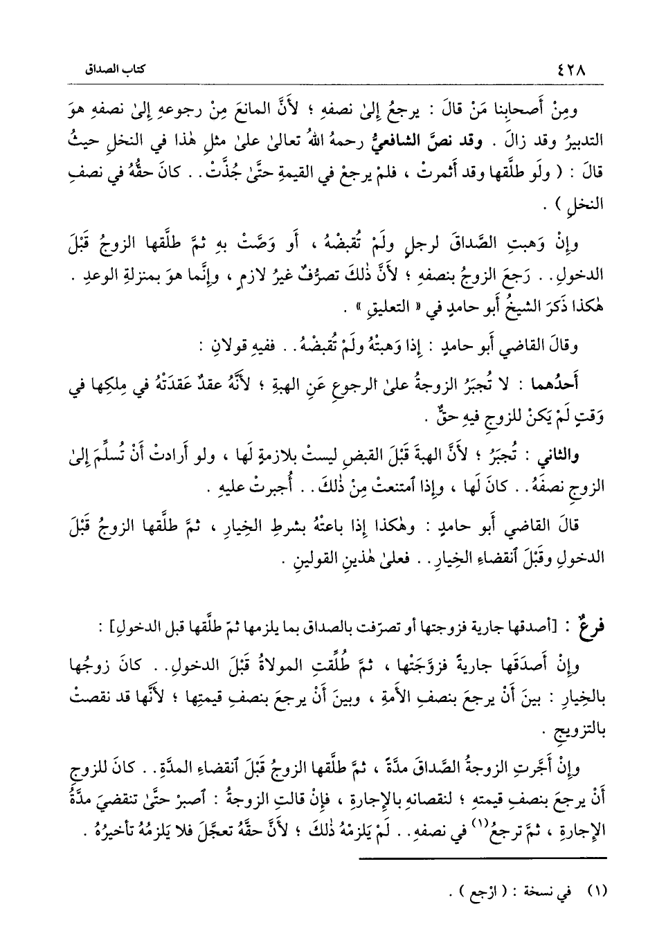 وإن أجرت الزوجة الصداق مدة، ثم طلقها الزوج قبل انقضاء المدة.. كان للزوج أن يرجع بنصف قيمته؛ لنقصانه بالإجارة، فإن قالت الزوجة: اصبر حتى تنقضي مدة الإجارة، ثم ترجع في نصفه.. لم يلزمه ذلك؛ لأن حقه تعجل فلا يلزمه تأخيره.