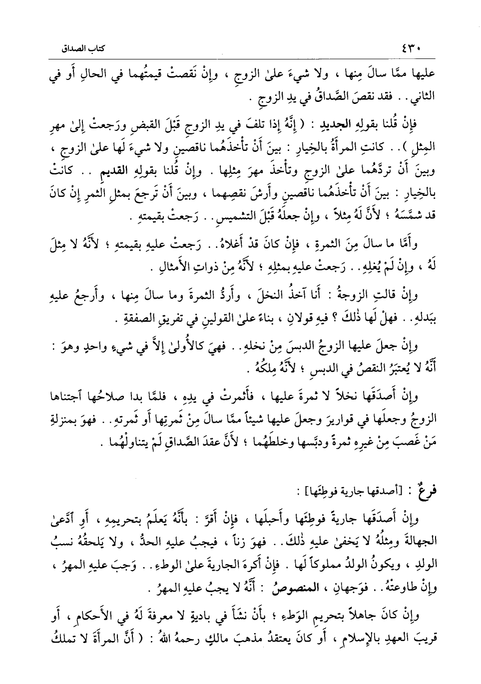 [فرع أصدقها جارية فوطئها]
