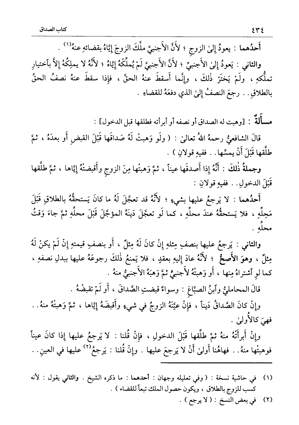 والثاني: يعود إلى الأجنبي؛ لأن الأجنبي لم يملكه إياه؛ لأنه لا يملكه إلا باختيار تملكه، ولم يختر ذلك، وإنما أسقط عنه الحق، فإذا سقط عنه نصف الحق بالطلاق.. رجع النصف إلى الذي دفعه القضاء.