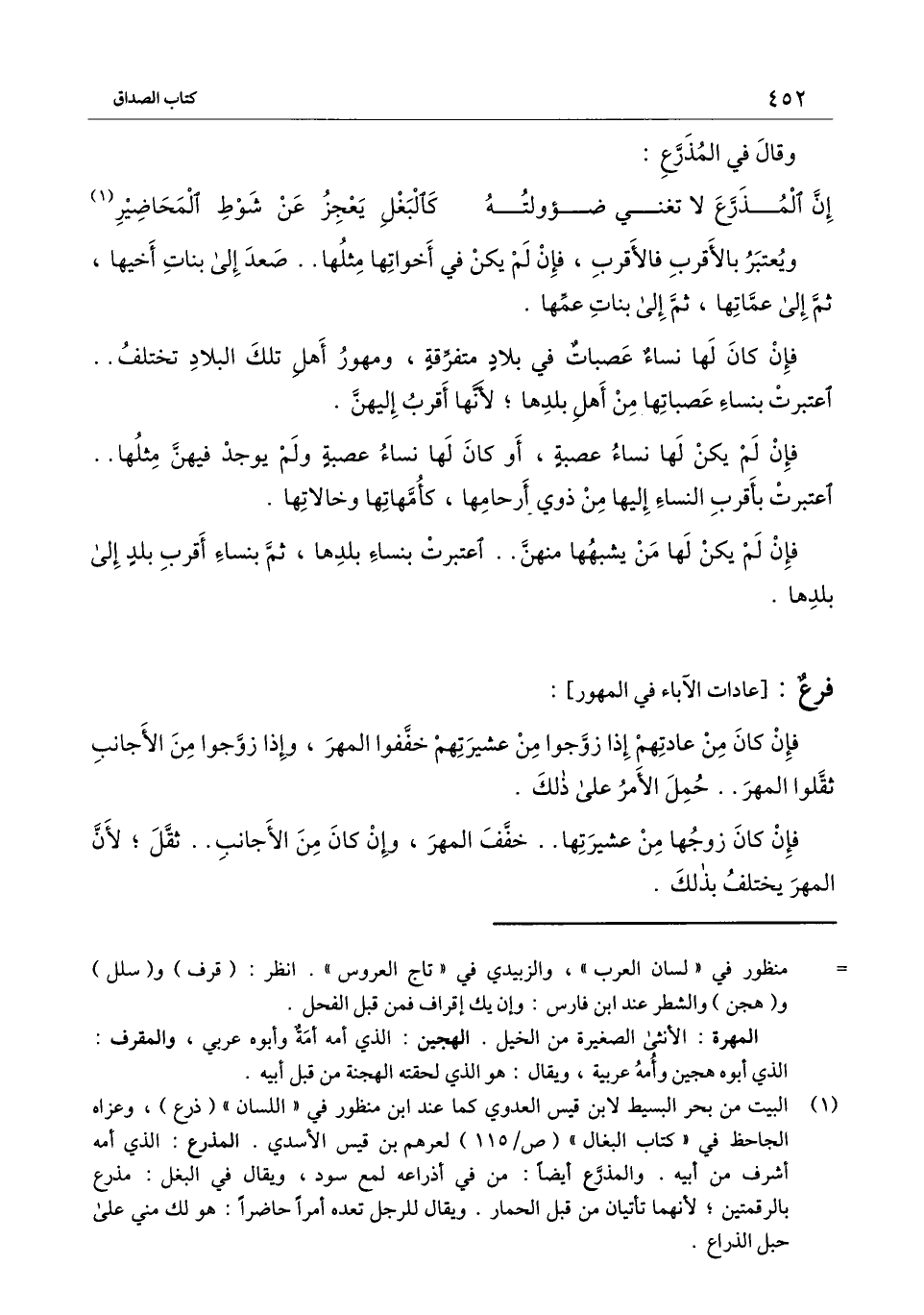 [فرع عادات الآباء في المهور]