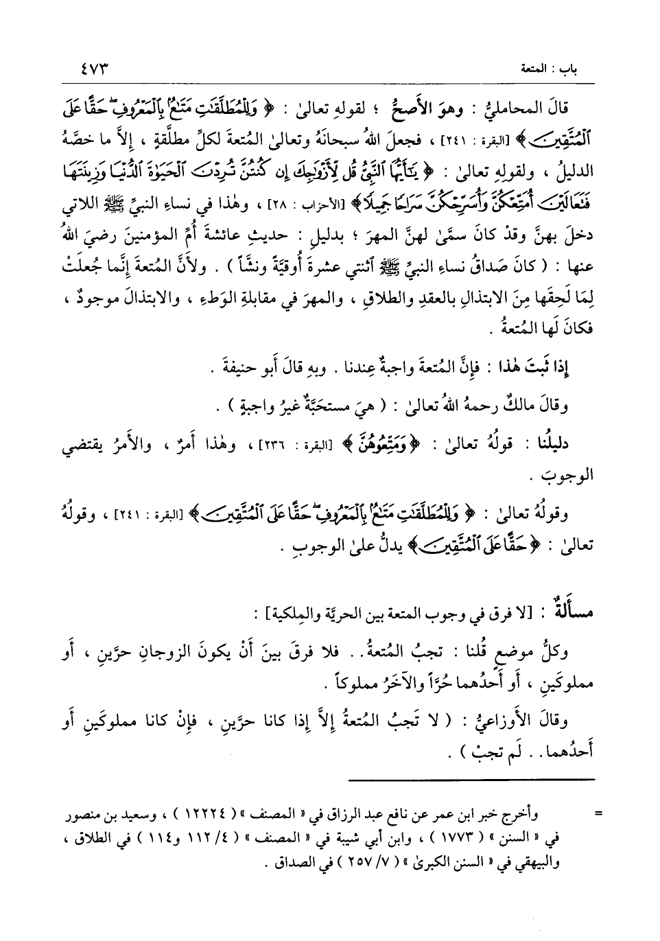 وقَوْله تَعَالَى: {وَلِلْمُطَلَّقَاتِ مَتَاعٌ بِالْمَعْرُوفِ حَقًّا عَلَى الْمُتَّقِينَ} [البقرة: 241] [البقرة:241] ، وقَوْله تَعَالَى: {حَقًّا عَلَى الْمُتَّقِينَ} [البقرة: 180] يدل على الوجوب.
