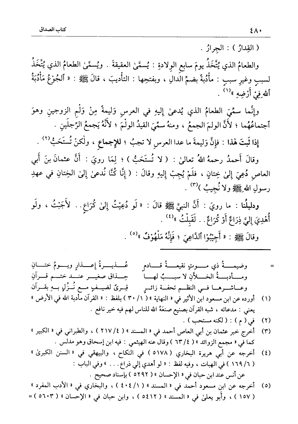 وقال أحمد - رَحِمَهُ اللَّهُ تَعَالَى -: (لا تستحب) ؛ لما روي: أن عثمان بن أبي العاص دعي إلى ختان، فلم يجب إليه وقال: (إنا كنا ندعى إلى الختان في عهد رسول الله - صَلَّى اللَّهُ عَلَيْهِ وَسَلَّمَ - ولا نجيب) .