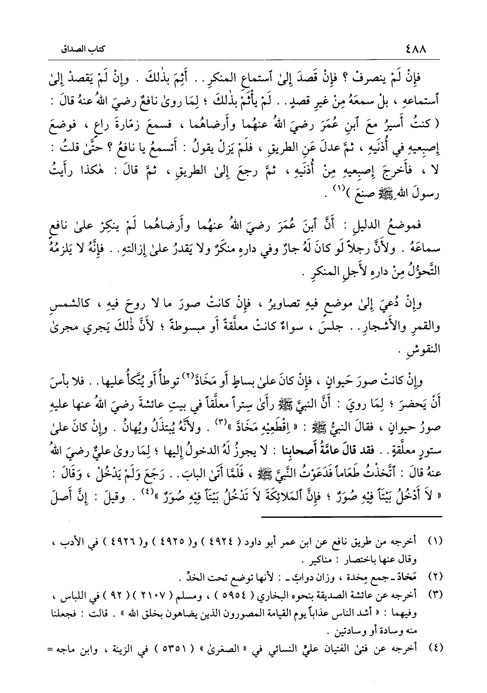 فإن لم ينصرف؟ فإن قصد إلى استماع المنكر.. أثم بذلك. وإن لم يقصد إلى استماعه، بل سمعه من غير قصد.. لم يأثم بذلك؛ لما روى نافع - رَضِيَ اللَّهُ عَنْهُ - قال: (كنت أسير مع ابن عمر - رَضِيَ اللَّهُ عَنْهُمَا - وأرضاهما -، فسمع زمارة راع، فوضع إصبعيه في أذنيه، ثم عدل عن الطريق، فلم يزل يقول: أتسمع يا نافع؟ حتى قلت: لا، فأخرج إصبعيه من أذنيه، ثم رجع إلى الطريق، ثم قال: هكذا رأيت رسول الله - صَلَّى اللَّهُ عَلَيْهِ وَسَلَّمَ - صنع) .
