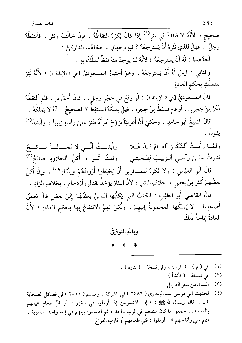 صحيح؛ لأنه لا فائدة في نثر إذا كان يكره التقاطه. فإن خالف ونثر، فالتقطه رجل.. فهل للذي نثره أن يسترجعه؟ فيه وجهان، حكاهما الداركي: