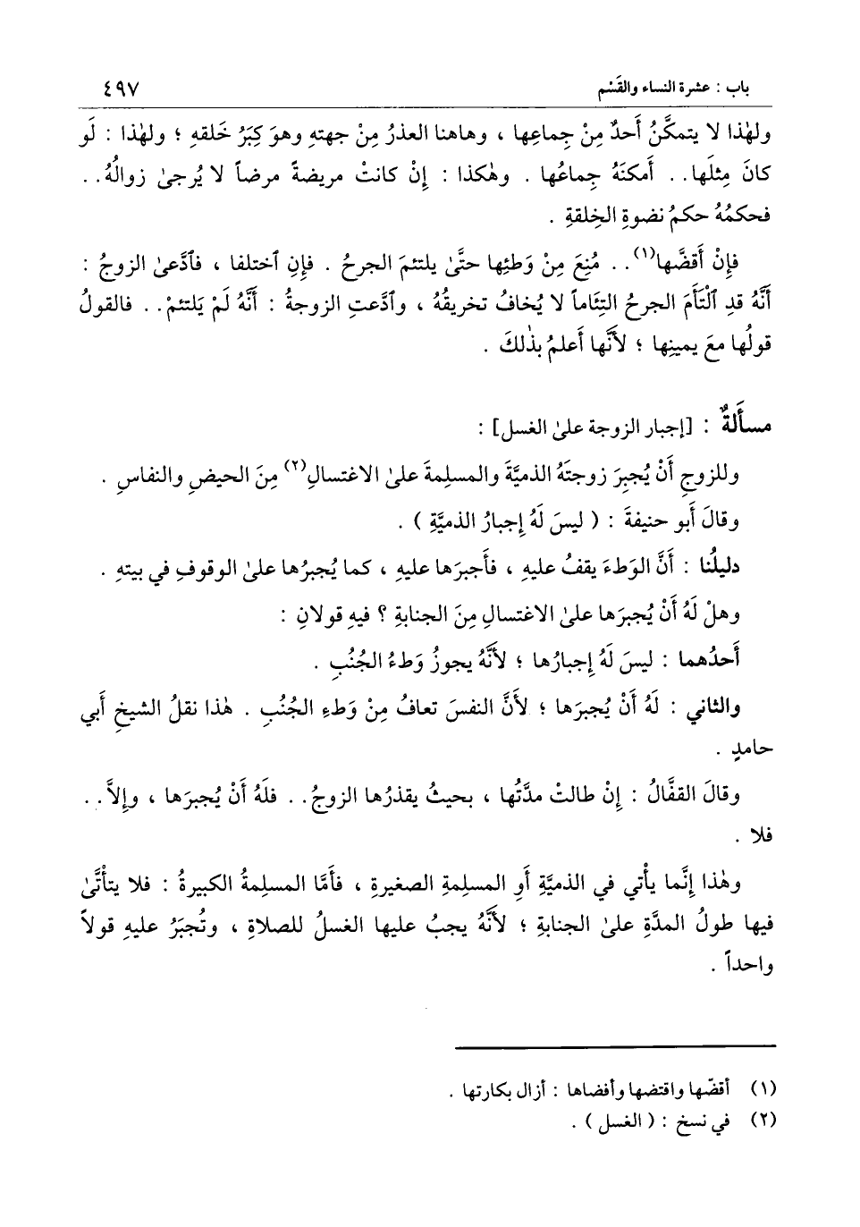 ) : وللزوج أن يجبر زوجته الذمية والمسلمة على الاغتسال من الحيض والنفاس.