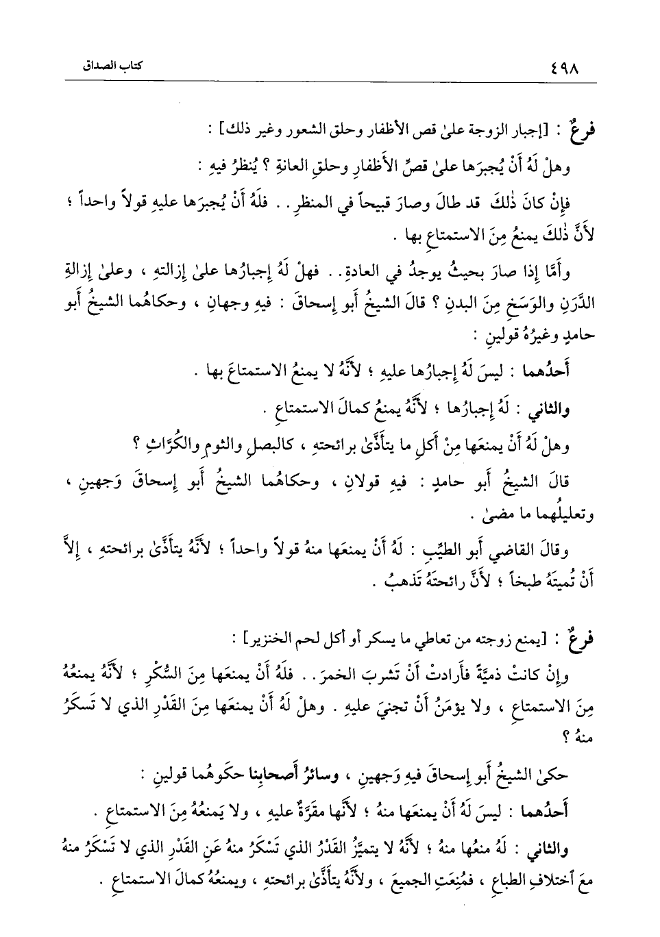 [فرع يمنع زوجته من تعاطي ما يسكر أو أكل لحم الخنزير]