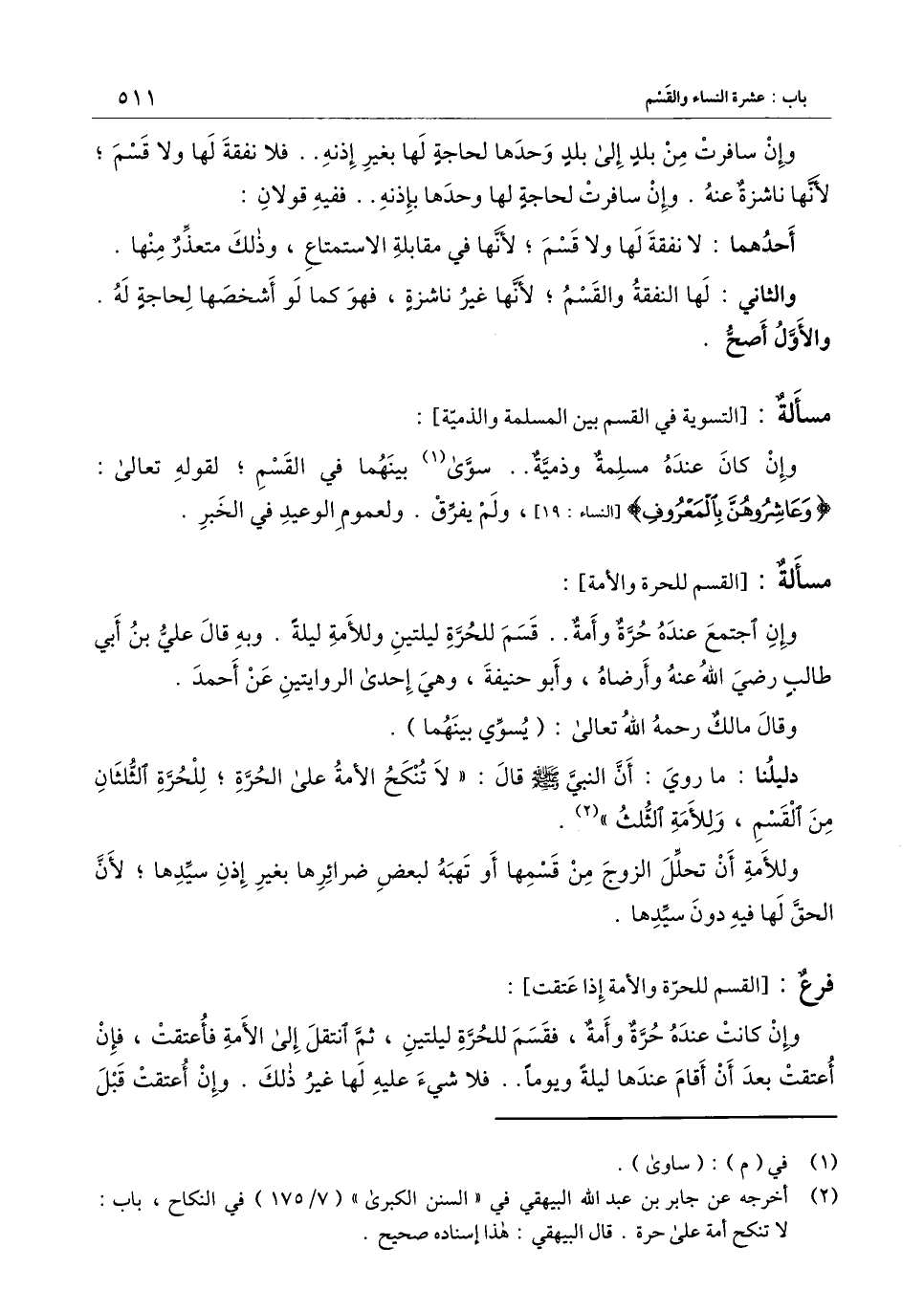[مسألة التسوية في القسم بين المسلمة والذمية]